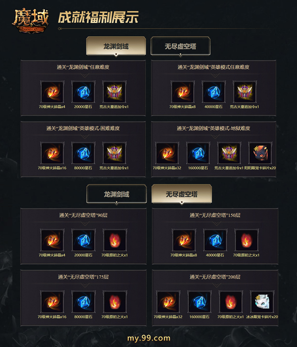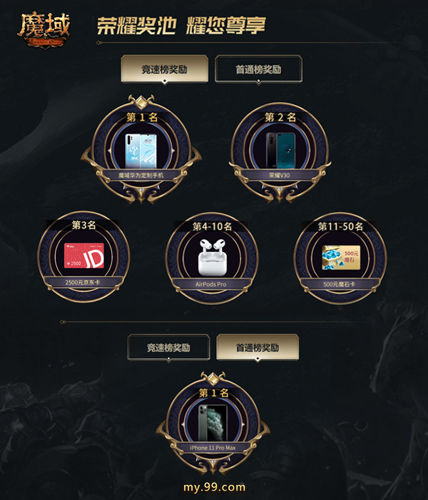 春暖花开,疫情的阴霾逐渐散去,勇士之魂已经苏醒,龙渊剑域英雄辈出!全新副本“龙渊剑域”闪耀登场,参与全球首通争夺战,赢取震撼豪礼!《魔域》“龙渊剑域”副本挑战赛现正火热开启中,iPhone11 Pro max、魔域华为定制手机、荣耀v30、2500元京东卡等大奖等你来拿! 龙渊剑域现世,全球首通荣耀争胜! 传闻创世神曾用一道神光从混沌中分割出天与地,而这道锋芒如今就被尘封于荒古火墓深处的龙渊剑域。在守护创世神光的2只混沌巨龙背后,究竟潜藏着怎样巨大的邪恶力量,被剑气侵染的神秘强敌又在编织着怎样的阴谋?这一切答案,将由《魔域》最强大的勇士小队在全新神火副本“龙渊剑域”探知创世的真相! 《魔域》全新副本“龙渊剑域”全球竞速赛,将于2月27日0:00至3月27日23:59热血燃启!所有神力等级达到70级的冒险者,每天可在卡诺萨城的荒古火墓监视者赫亚(242,483)的指引下进入荒古火墓中的神秘禁地——龙渊剑域,挑战混沌巨龙,斩杀隐藏BOSS魔剑希尔达,获取创世锋芒的至高力量! 在竞速赛期间,全球首个拿下“龙渊剑域”副本英雄模式地狱难度隐藏BOSS的玩家小队,所有成员均可获得奢华大礼iPhone11 Pro max一部。在活动期间,按照玩家挑战“龙渊剑域”副本的通关速度,击败隐藏BOSS速度最快的50支队友,将按照通关时间进行排名,获得魔域华为定制手机、荣耀v30、2500元京东卡等竞速豪礼。 热血与速度并存,策略与战力兼顾,谁将率先斩杀魔剑希尔达的人头,阻止其夺取创世锋芒的入魔恶行,守护亚特大陆来之不易的和平? 热血开战!全新副本成就大奖等你拿 奢华豪礼当前,手持神兵、身披战甲的您是否已经跃跃欲试了呢?在闪耀征途的前方,还有超丰厚的成就大奖等你来拿! 活动期间,玩家只要击败不同难度的龙渊剑域副本隐藏boss,即可获得相应成就好礼:海量星石、70级神火碎晶、荒古火墓追加令、阳阳跟宠卡碎片等福利(每档成就只能解锁一次奖励)!同时,挑战极限通关无尽空虚塔达指定层数,海量星石、70级神火碎晶、70级原初之火、冰冰跟宠卡碎片等您一网打尽!快来超越自己,赢取豪礼吧! 为了助力所有勇士超越自我极限,竞速制霸更加畅快,2020年2月27日维护后至2020年3月27日23:59,玩家等级达到90级,每天在线5分即可领取1个首通助力礼包,打开获得70级神火碎焰*10、星石*4000奖励。 龙渊剑域初现世,创世锋芒引邪念,《魔域》龙渊剑域副本全球挑战赛即将打响,赶紧喊上兄弟一同超越极限竞速制霸,豪取珍稀奢华大奖吧! |