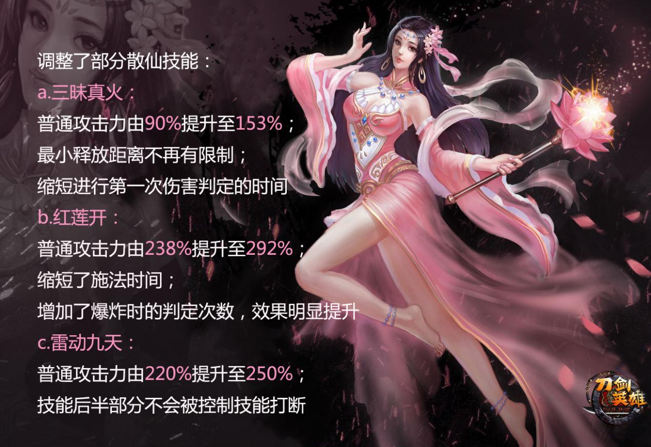 畅游旗下国产竞技格斗网游开创者《刀剑英雄》开年新版本“决战狂沙”今日激情公测,并于12:30开启2组特权绿色新服——绿色区 – 纵剑九州(无阵)、绿色区 – 血战八荒(无阵)。两组特权绿色新服备足海量大礼等你前来,登录送王者锦囊、演武修炼效率翻倍,还有江湖成长礼包等你来拿!更有全民冲级赛送千万元宝、三十届公会争霸赛等你来战! 此外大家翘首以盼的全新12万战力新矿区终于来袭,摩拳擦掌一定在荒骨漠大战一场,尤其是本次版本全面加强的散仙和力士。除了内容更新之外,运营团队精心送出海量福利,微信专属大礼包、老友回归等大礼也花式开启,为你的回归和新征程助力! 送王者锦囊、最高5万红利 特权绿色新服等你来战>>> 【“特权绿色新服”送王者锦囊 斗神演武/修炼效率永久翻倍 瓜分千万元宝】 本次特权绿色新服,不仅绿色无抽奖包,还准备了史无前例的福利和海量活动等你来玩!多倍经验大放送,斗神演武/修炼效率永久翻倍,让你轻松冲级,直接感受顶级玩家对战快感;登录就送王者锦囊领王者、2000元力,还有江湖成长礼让你轻松拿大礼;宝刀未老,不仅可直升299,最高能拿5万红利,还有公会争霸赛,征战一方; 与以往不同的新服全民冲级赛,人人都能参赛快人一等,瓜分千万元宝! 【12万战力的荣耀之争 新矿区-荒骨漠血战来袭】 为了满足不同战力的玩家PK需求,新开矿区——荒骨漠,限制不超过12万战力的玩家进入。凡是达到20级的玩家可以从帮会接引人处选择“传送矿区”,消耗200金钱即可进入场景“荒骨漠”。 荒骨漠,名副其实,均为沙漠之地,只有中间为绿洲。荒漠狂沙,特别适合隐藏,到处危机四伏。为增加玩家PK趣味和公平性,战力需不超过12万,且进入后玩家不允许更换装备。在战力相差不大的情况下,输赢全靠技术! 【技能攻击力最高提升70% 仙妖齐爆发 效果大幅提升】 力士和散仙是近期大家呼吁较多的职业,本次资料片中将全面加强。不仅主要技能的攻击力直接提高之外,其它效果也会作出合理调整。 散仙有三个技能作出了大幅调整,其中三昧真火除了最小释放距离不再有限制,缩短进行第一次伤害判定的时间外,普通攻击力由90%提升至153%,得到了大幅提升,且最多可以造成7连击。红莲开缩短了施法时间,极大的提高了生存能力,并且在爆炸时增加了伤害次数,由原来的1-2次伤害,提升到3-4次,攻击力也由238%提升至292%,可谓效果明显。雷动九天调整了后半部分不会被控制技能打断,攻击力也由220%提升至250%。玩了这么久的仙,再次迎来了春天!(图中数值均为最高等级) 关于妖的建议,一直在持续的收集玩家的建议,本次调整也是基于大家的建议。关注较多的盘古开天技能 ,略微缩短了技能的持续时间,降低了技能对自身造成的破绽,第四段攻击力由139%提高至209%。而大风车和天地乍合的技能伤害也进行了大幅提升,小编就卖个关子,到时候请大家一起在游戏里体验吧! 【老友回归免费领赤城套 账号鉴定拿红利】 对于回归的80级及以上的刀剑老友,不仅可获得重归经典礼包,同时还能获得80级赤城装备及元老孟劳系列武器。 除此之外,各位稻米还能通过账号鉴定获得红利,从而兑换珍稀道具!还在等什么,快回归刀剑,来新矿区与兄弟们一起征战江湖! 【关于《刀剑英雄》】 中国原创,首款武侠竞技网游《刀剑英雄》,以《刀剑封魔录》系列游戏为背景世界观,它依托恢宏博大的中国神话与历史背景,再现古老东方上下五千年的悠久文化,将您带入一个梦幻的神奇世界。99连斩、独特竞技、独门阵法、独创演奏、三界奇招、有生帮派、成长武器、运功疗伤八大玩法独树一帜,剑指天下豪杰!形随意动,攻防进退方寸间尽享格斗酣爽。辨式拆招,刚柔并济中领悟竞技神髓,是喜欢PK网游的玩家们绝对不能错过的经典网游。 国产竞技格斗网游开创者《刀剑英雄》DJ.CHANGYOU.COM |