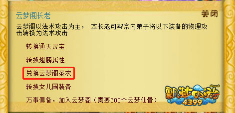 云梦阁乃世上最形影不定的存在,是有“云梦之灵”之称的幻术大师莫仙灵所创。《4399飘渺西游》全新门派云梦阁的登场,吸引了不少弟子转入其门下。今天就来为大家解答一下,如何转职到云梦阁,有兴趣的弟子们快来了解一下吧! 转职NPC: 云梦阁长老(陷空山),选择我要加入云梦阁,然后点击万事俱备,加入云梦阁(转职需脱下穿戴的装备及重置经脉等级)。 转职条件: (1)角色当前等级天仙100级。 (2)背包中有转职道具—云梦仙骨。 二者缺一不可。 云梦仙骨获得方式: 1.长安城周福利NPC处,活跃度任务礼包内获得; 2.活动和挂机限时产出; 3.师门任务:转职云梦阁的师门任务接取及完成都在原门派进行。 云梦阁装备获得: 1.云梦阁天仙套产出:转职后会自动获得云梦阁弟子礼包(内含云梦天仙一套装备,双击即可获得)。 2.云梦阁黄金套产出:十二宫掉落(与其他6门派掉落一致)。 3.十二宫装备转换:在云梦阁长老处选择兑换云梦阁圣衣(圣衣兑换装备栏只显示非云梦阁的黄金装备),转换后的装备品质不变,主属性随机。 通天灵宝和翅膀属性转换: 1、通天灵宝主属性转换限制: (1)只有主属性才能参与转换; (2)只有力量转灵力及灵力转力量,其他属性不在转换范围内; (3)灵宝属性转换次数没有限制。 2、翅膀转换限制: (1)灵力与力量属性可以互相转换。 (2)物理暴击率与法术暴击率可以互相转换。 叛出云梦阁注意事项: 1.通天灵宝属性叛出云梦阁后不可再进行转换。 2.翅膀属性叛出云梦阁后不可再进行转换。 3.叛出云梦阁后不可在云梦阁长老处使用圣衣兑换及女儿国装备转换功能。 《4399飘渺西游》是一款充满搞笑色彩的Q版经典回合制网页游戏。它通过重新描述唐僧师徒西天取经的故事,通过现代的思维,和诙谐趣味的方式,将新西游的故事展现在玩家面前。情节丰富搞笑、悬念丛生。 4399游戏吧是4399游戏推出的专业的中文休闲游戏社区。不仅网罗了最酷炫最好玩的精品游戏,更集合了最新鲜最缤纷的相册广场,结合最多元最丰富的群组互动。《生死狙击》、《皮卡堂过家家》、《天空之舞》、《美食大战老鼠》、《飘渺西游》、《航海王OL》、《葫芦娃》、《TOUCH热舞》、《水煮三国》、《核金弹头》、《枪魂》、《小小突击队》、《斗罗大陆》、《火线精英》、《完美漂移》……更多精品游戏,请锁定4399游戏吧。 |