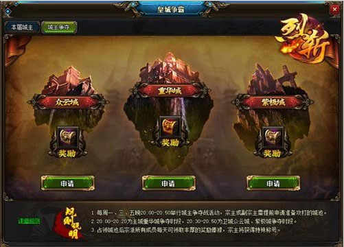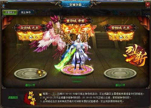 胜者为王,败者为寇!若想要想成为区服中的最强王者,必然要经过精挑细选。在《4399烈斩》中,皇城战是选拔佼佼者的战斗,唯有具备高战力高操作的玩家,才能称霸全服。巍峨皇城,城主宝座,乃能者居之!天下强者汇聚皇城,究竟谁能问鼎皇城,谁能号令群雄、权倾天下!优胜劣汰,一切尽在《4399烈斩》之皇城争霸! 玩家如果想参加皇城争霸活动,那么在活动开始前,需要由宗主或副宗主申请攻打城池,每次最多申请一个,申请后10分钟内不得更改申请。每个宗派最多占领一个城池,主城争夺失败的宗派可继续申请争夺卫城,活动将与邻近服务器跨服进行,在本服宗派战力榜排名前三的宗派可成功申请进行城池争夺。 玩家等级需达到40级及以上并且加入宗派8小时后才能参与城主争夺战活动。活动开始后,玩家可开始攻击帝皇之柱,对其造成最后一击的玩家所属宗派将占领帝皇之柱。帝皇之柱被占领后将自动刷新,成功占领的宗派需要保护帝皇之柱,未成功占领的宗派可攻击帝皇之柱进行抢夺。 占领帝王之柱的宗派将会随时间累积积分,在皇城争霸的活动结束时,积分最高的宗派获胜。所有参与活动的玩家将获得丰厚的参与礼包。参与活动并且获得胜利宗派的所有成员,将获得优胜奖励,而宗主则将获得特殊称号(未参与活动的玩家无法获得上述奖励)。 在皇城争霸活动中,占领城池后宗派里的所有成员每天可领取丰厚的奖励俸禄,但玩家加入宗派的第一天不能获得每日俸禄奖励,活动内挂机可持续获得大量的经验,所有参与活动的玩家将在皇城争夺时段结束后获得参与礼包。 《4399烈斩》是一款极具PK快感的即时战斗传奇页游。游戏以行侠仗义为主线展开,刷Boss集装备、全新跨服玩法、热血逼真的沙场对决,登陆即送VIP,钻石元宝免费送,带你体验最刺激、最火爆的战斗激情! 4399游戏吧是4399游戏推出的专业的中文休闲游戏社区。不仅网罗了最酷炫最好玩的精品游戏,更集合了最新鲜最缤纷的相册广场,结合最多元最丰富的群组互动。《生死狙击》、《皮卡堂过家家》、《天空之舞》、《美食大战老鼠》、《飘渺西游》、《航海王OL》、《葫芦娃》、《TOUCH热舞》、《水煮三国》、《核金弹头》、《枪魂》、《小小突击队》、《斗罗大陆》、《火线精英》、《完美漂移》……更多精品游戏,请锁定4399游戏吧。 |