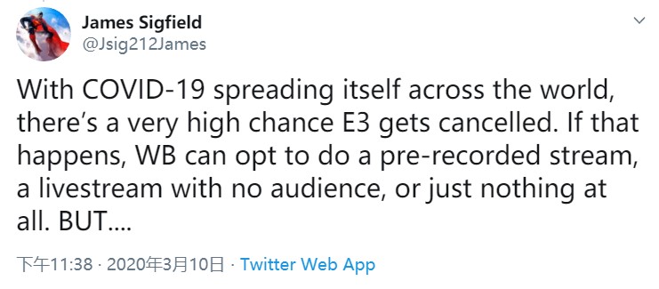 之前有消息传出华纳的《哈利·波特》开放世界游戏依旧在开发之中,而且洗的呢《蝙蝠侠》游戏将会是一部软重启。那么大家就有疑问华纳会在什么时候公布这两款新作。据GWW记者James Sigfield透露,华纳会在E3上公布新蝙蝠侠。 GWW记者James Sigfield称华纳将举办以《蝙蝠侠》《哈利·波特》等为主题的E3 2020会议。此后,他立即评论说,如果由于新型冠状病毒问题而取消了E3,华纳可以选择进行预先录制的视频或实时直播方式公布。 《蝙蝠侠》《哈利·波特》是否会在E3上公布,目前仍然未知。但由于新型冠状病毒的影响,E3 2020可能会像GDC 2020那样推迟。冠状病毒的恐慌对全球股票市场造成了毁灭性影响,特别是对于游戏开发商而言,即使有一系列令人兴奋的新游发布,也很难说出华纳是否会有很好的表现。 |
