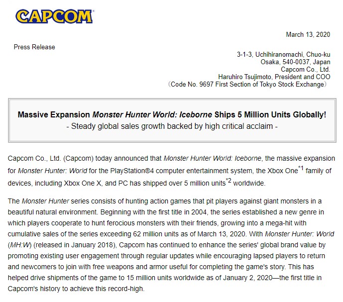 今天(3月13日)CAPCOM 官方确认,《怪物猎人:世界》资料篇《怪物猎人世界:冰原》的全球出货量已经突破了500万份,《怪物猎人:世界》原版的销量也突破了1500万份(系列历史最高),CAPCOM 表示本作不俗的游戏质量与官方持续运营所带来的高度评价,也推动了《怪猎世界:冰原》销量的稳定增长,借由两款作品的出色表现《怪物猎人》系列的总销量更是突破了6200万份。 除了取得大卖的游戏《怪物猎人世界:冰原》外,CAPCOM 还提到了《怪物猎人》的其他两款作品:移动端游戏《怪物猎人:Riders》自2020年2月发售后已经取得了300万的下载量;此外 CAPCOM 也正在通过多媒介的布局来巩固《怪物猎人》系列的影响力,同名的好莱坞电影《怪物猎人》也预计将于2020年9月播出。 《怪物猎人:Riders》 《怪物猎人》电影 |