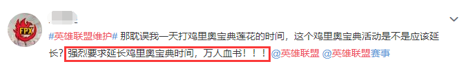 LOL英雄联盟17日凌晨2:00-12:00停机维护,原本应该在12点结束,官方又放出了紧急维护的延迟公告?3月17日23:59也是无限乱斗模式的截止时间,很多玩家都集中在这个时间肝鸡里奥莲花,“全区停机维护时间延长未定”,一时间也惹怒了lol玩家,开启了吐槽模式。 英雄联盟维护,网友们在线催进度,部分玩家表示:“动不动就维护,BUG却越来越多”,质疑技术维护“真技术”,在补偿奖励方面,玩家要求鸡里奥宝典时间延长,还要人手补偿一张改名卡? 当然,无限火力结束了,快乐时间也结束了,基于这个原因,“早起打无限火力居然维护”的玩家更是火大,暴躁的孩子们网瘾犯了,纷纷申请快乐模式能不能再延长时间。 上完网课的、写完毕业论文的、放假宅在家的、熬夜补觉起床了的,等等状态的lol玩家,集体在线吐槽维护进度,他们表示王者荣耀、吃鸡、植物大战僵尸、欢乐斗地主等等游戏已经玩到没意思了,就等今日份的快乐了。 “肥宅联盟上不去的第14个小时,想它”、“我的青春结束了”、“非逼我写论文吗”,又搞笑又心酸的吐槽,以前游戏维护没上热搜还真不知道,原来苦等游戏开启是这么难受的一件事情,当下年轻人的生活方式,果然是吃饭、睡觉、LOL,三分之一的快乐没了,能不难受吗? 当然,这种热闹怎么可能少得了祖安玩家,他们带着他们的段子和给爷爬、给爷整笑了直接来了,英雄联盟维护被骂上热搜,想必也是有一些祖安人已经前来报道的原因。 有些玩家已经测试可以正常登陆了,有些大区的维护已经结束了,你的服务器正常了吗?马上启动看看吧。但其实,一个游戏选择维护,肯定是想要修复或者更新一些内容来提高玩家的游戏体验,也有部分玩家认为,游戏紧急维护肯定有一定的原因,并不需要喷之而后快。 无限火力这个模式在最开始一上线便引爆了整个游戏,玩家沉迷在技能“bug”的快乐中不可自拔。技能不耗蓝、80%的冷却缩减、节奏超快的比赛,都让玩家们爱不释手,但由于官方将无限火力、克隆大作战等特殊模式设为轮换游戏模式,因此每次无限火力的到来都是一大热点。 当所有爱无限火力的玩家们都已经准备好滚键盘时,维护却延期了,玩家太难了,以至于都在评论区直接聊起了天,无限火力即将关闭,不过我们还有克隆大作战、六杀争夺战等特殊模式,快乐结束了,那就开启下一个快乐吧! |