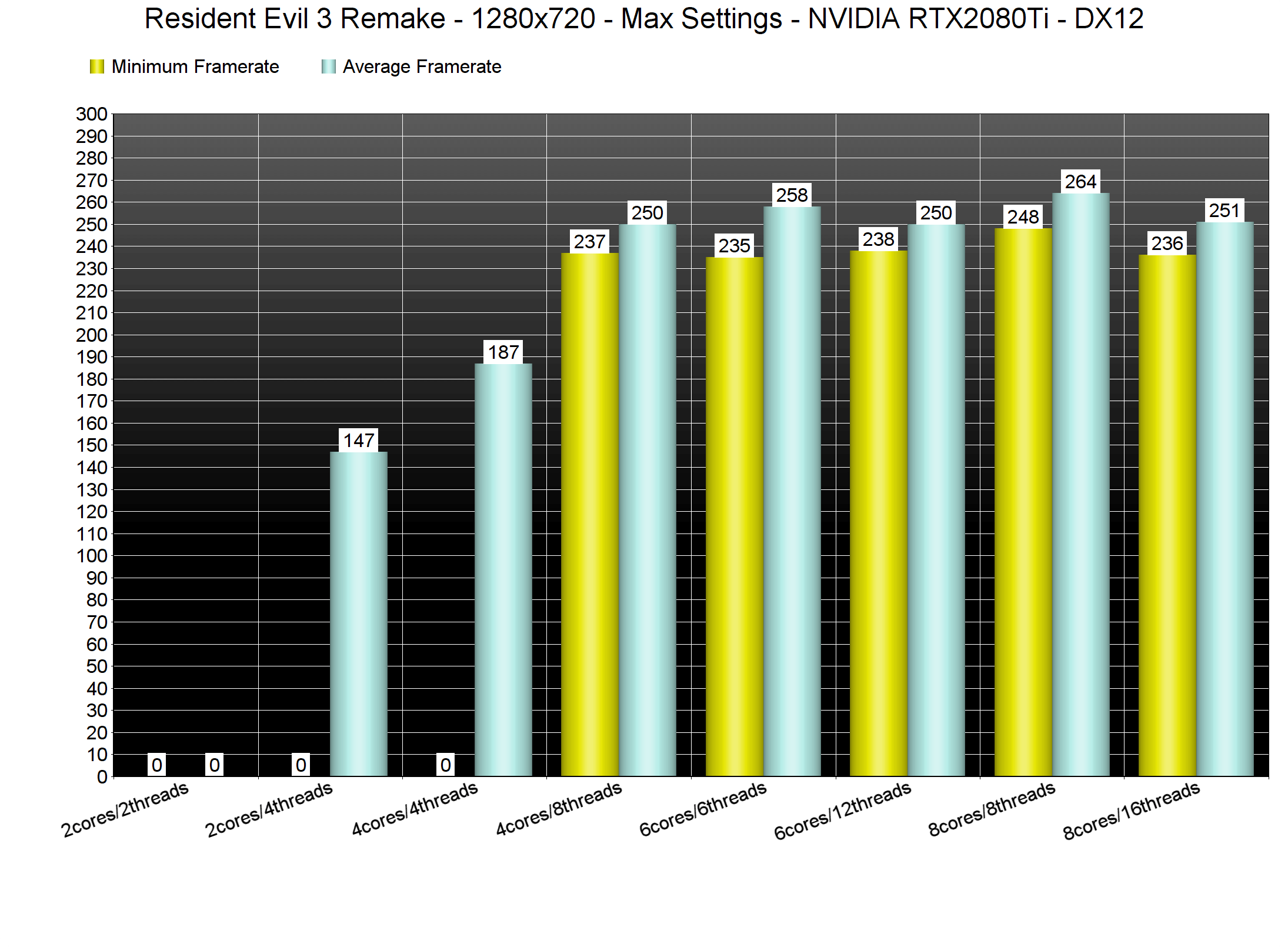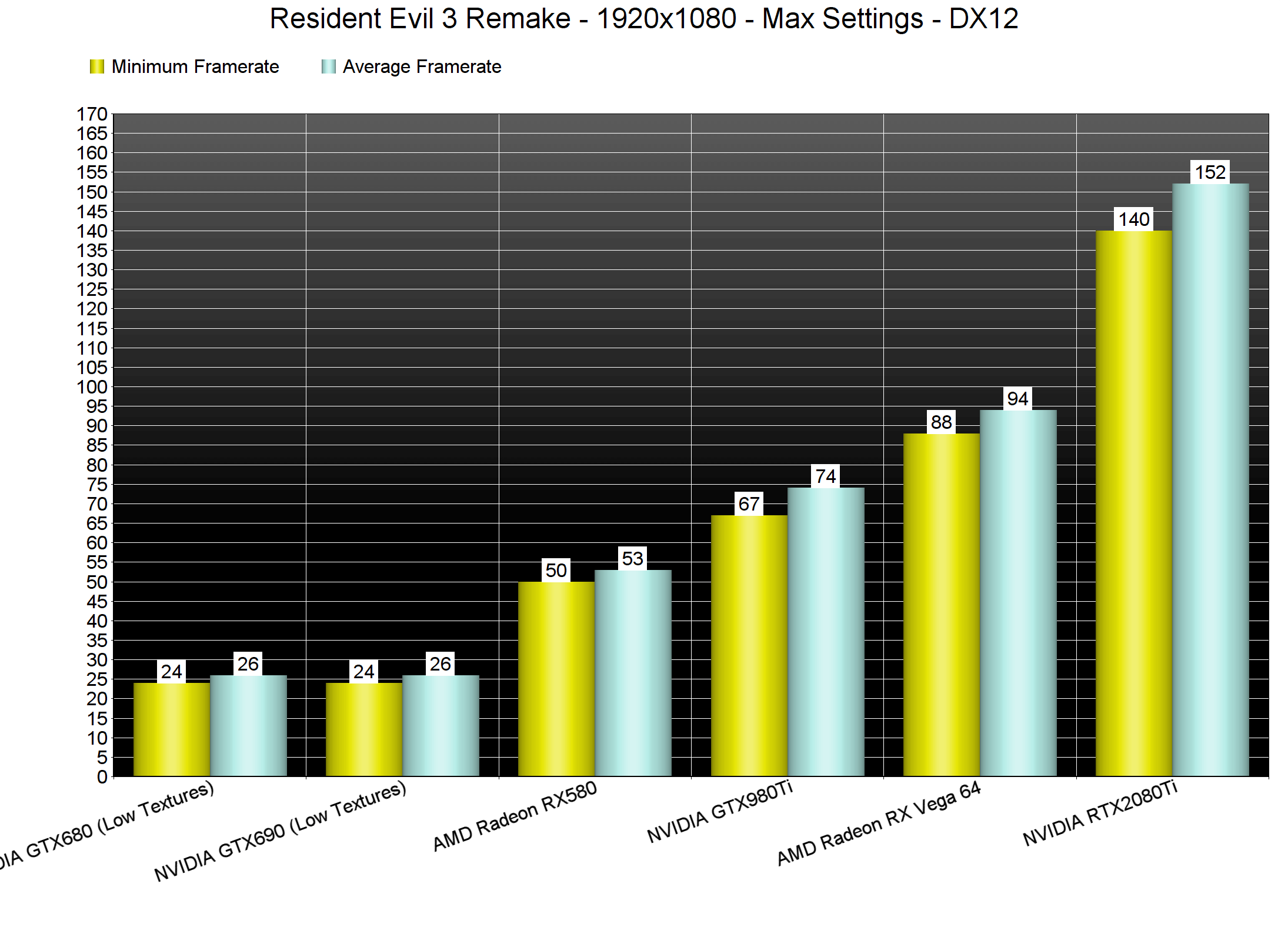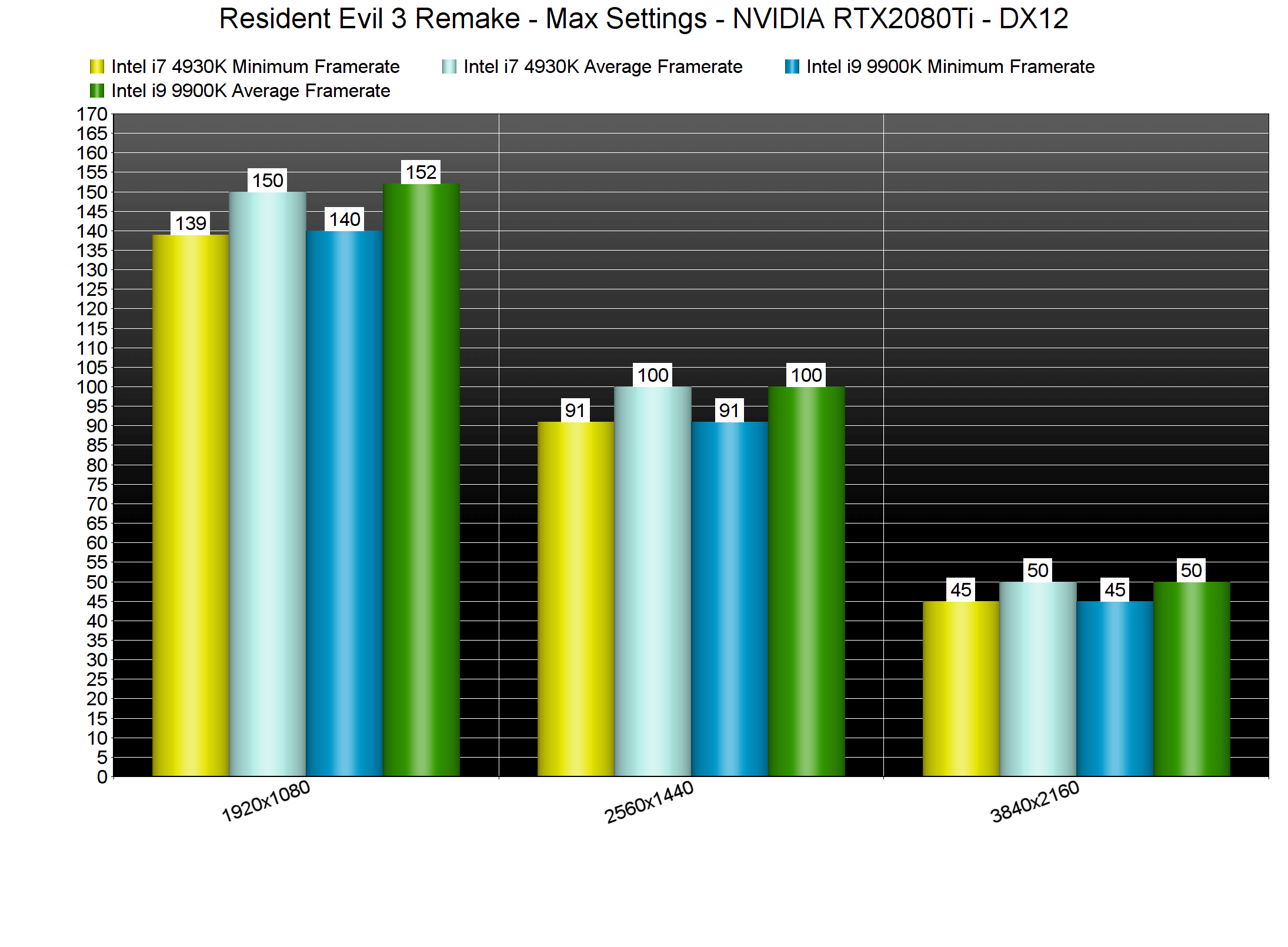 《生化危机3:重制版》是卡普空最新发布的《生化危机》游戏,本作继续采用RE引擎,支持DX11和DX12。外媒DSOGaming发布文章,分析了这款游戏在PC平台上的性能表现,以下是全文。 本次测试采用Intel i9 9900K CPU、16GB DDR4 3600Mhz内存,分别测试了AMD Radeon RX580/RX Vega 64和NVIDIA RTX 2080Ti/GTX980Ti/GTX690显卡。软件方面运行于Windows 10 64位系统,显卡驱动更新至GeForce driver 445.75和Adrenalin 2020 Edition 20.4.1。NVIDIA方面并未给本作添加SLI配置文档,所以GTX690的性能表现和单块GTX680相近。 《生化危机3:重制版》为PC平台提供了许多画质选项,PC玩家可以调整抗锯齿、材质、材质滤镜、Mesh、阴影、粒子效果、环境光遮蔽、体积光照等效果的品质。另外还可以开关屏幕空间反射、亚表面散射、镜片光斑、景深等特效。卡普空还加入了色差开关,支持AMD的 FidelityFX图像技术。 为了测试游戏对多个CPU线程的利用率,我们分别模拟了双核、四核、六核CPU。之前也提到,本作同时支持DX11和DX12。当开启六个或更多CPU核心/线程的时候,DX12的表现更好。而在CPU线程较少的时候,DX11的表现更好。比如在模拟双核系统(开启超线程),用DX12运行会遭遇严重的卡顿,但用DX11运行就流畅很多。所以如果你的CPU支持超线程的话,务必确保开启超线程。 这款游戏不太吃CPU,我们的Intel i7 4930K和Intel i9 9900K都能通过DX12运行,甚至在1080p分辨率下看不出明显的性能差异。 在高配PC硬件上,DX11显然会成为拖累。大家可以通过图表数据看到DX11和DX12的差距,DX11对RTX2080Ti显卡的利用率很低,我们猜测可能是出现了绘图请求/显存的瓶颈效应。 分页符 因为本作并没有自带跑分工具,所以我们只能使用游戏中特定的复杂场景作为参照。我们选择的是吉尔和威克斯一起遭遇大群僵尸的那个场景,基本上可以反应游戏算力压力最大的情形。 在高压测试环境下,我们的AMD Radeon RX580是根本无法在1080p特效全开的同时提供稳定帧数的。最低50fps,平均53fps。但在其他场景下的运行效果可能会好一些。 在2560×1440分辨率搭配特效全开的画质配置下,只有RTX2080Ti能保证全程60fps流畅体验。AMD Radeon RX Vega 64的效果略逊一筹,经常会跌至55fps。而在4K分辨率下,任何GPU都无法保证全程60fps。RTX2080Ti显卡的稳定上限分辨率是3328×1872。 画面效果上,《生化危机3:重制版》对得起这样的GPU需求,虽然大多数时候画面看上去跟《生化危机2:重制版》基本一模一样,但还是可以看得出进步的。首先所有角色的细节都更多,而且游戏流程中还有许多大型爆炸场面。体积光照效果非常赏心悦目,贴图材质也都很逼真。如果硬要挑错的话,那就是游戏中的反射光存在像素级别的噪点,这个问题同样出现在《生化危机2:重制版》中,看来是一个引擎上的根本问题。 总而言之,无论是DX11还是DX12,《生化危机3:重制版》都能在相应的硬件和画面配置上流畅运行。低配PC用DX11,六个线程以上的CPU就可以用DX12。看起来最吃算力的是体积光照特效,如果你发现在特定场景中出现卡顿,可以降低体积光照特效的品质,提升性能表现。大多数游戏流程中,AMD Radeon RX580就足以胜任1080p分辨率+特效全开的画面配置。 另外本作对键鼠操作的支持也很好,没有出现任何问题,总体来说是一流的PC性能表现。 |