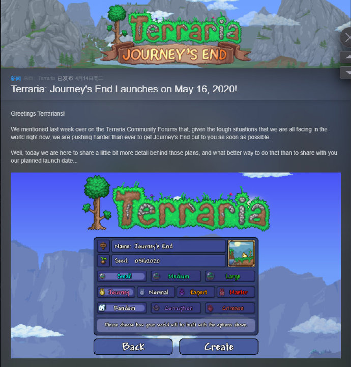 《泰拉瑞亚》大型更新“旅程的终点”5.16登陆PC