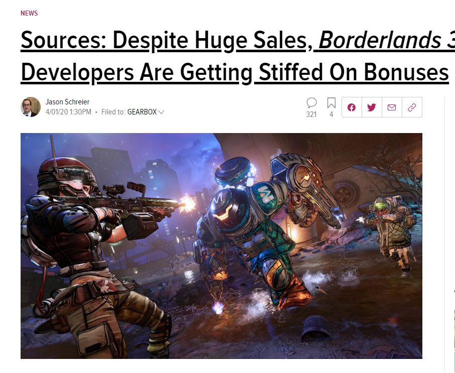 Gearbox老板斥责Kotaku的扣发奖金爆料:只为带节奏搏流量
