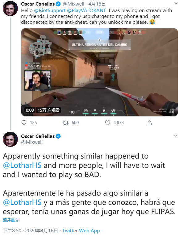 C9战队的《CS:GO》职业选手Oscar ‘mixwell’ Ca?ellas 近日也是跟随潮流体验了一波拳头的最新FPS作品《Valorant》,然而在直播中却遭遇了一场啼笑皆非的意外——玩到一半被官方封禁,只因为mixwell把手机插上电脑充电。 这位广受玩家喜爱的职业选手在意识到自己被Ban后也是十分无奈,只得在推特上发言求助官方,要求解封自己的账号,直播效果拉满。 “我把手机用USB连上电脑充电,结果就被反作弊系统ban了,你们能帮我解封吗?” Mixwell在推特上还透露,有不少人和他遭遇了类似的窘境。包括G2战队的Lother在内的复数职业选手或电竞主播同样被反作弊系统挡在游戏外。 拳头如今已经解决了问题,并声称其实Mixwell并没有被实质封号,只是遭遇了一个可能发生在参与过3月A测的玩家客户端中的bug。 然而有趣的是,在此事发生后不久,拳头公司就发布了游戏界最大手笔的漏洞悬赏之一。如果有人能在《Valorant》的反作弊系统“Vanguard”中找到安全漏洞,将有可能获得最高10万美元的奖励。 |