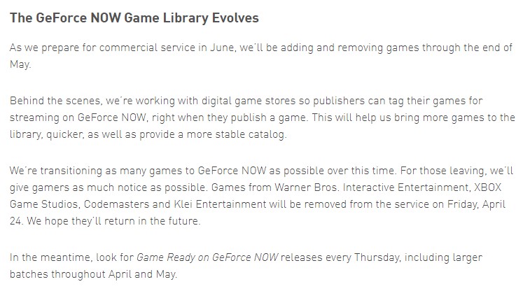 Xbox、华纳等四家厂商 将于24日退出GeForce Now