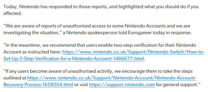 大量玩家在Reddit和推特等社交平台抱怨自己和NS关联的任天堂账户出现异常,疑似被盗,在外网进行大面积警告后,有不少玩家检查后发现自己也中招,甚至已经出现任天堂账户所绑定PayPal被拿去盗刷(100英镑的《堡垒之夜》金币)的案例。 对此任天堂发言人向Eurogamer发送了一则官方说明,表示: “我们已经注意到关于任天堂账户未经授权登录的问题,正在积极调查情况。 与此同时我们建议用户开启账户二步验证。” 随后任天堂同样对VGC发表了类似的声明,希望玩家耐心等待官方调查结果。就在两周前,任天堂日本官方宣称发现有一些第三方登录访问用户信用卡数据的案例,并给出了警告。而昨日任天堂还暂时关闭了eShop市场的支付渠道,可以推测官方的确在积极调查这些案例。 随着病毒疫情席卷全球导致居家隔离,各行各业的黑客活动和攻击也频繁起来,建议玩家小心为上,注重账户安全。 |