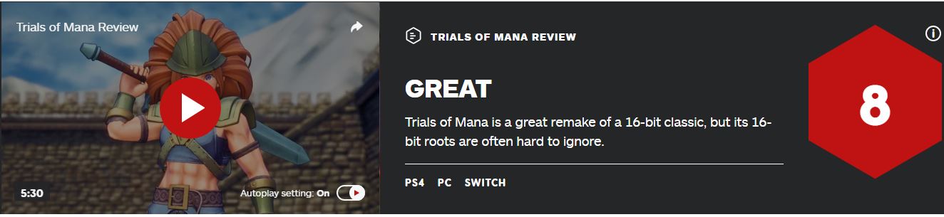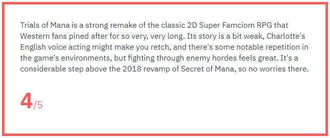 《圣剑传说3 重制版》IGN 8分 战斗系统获一致好评