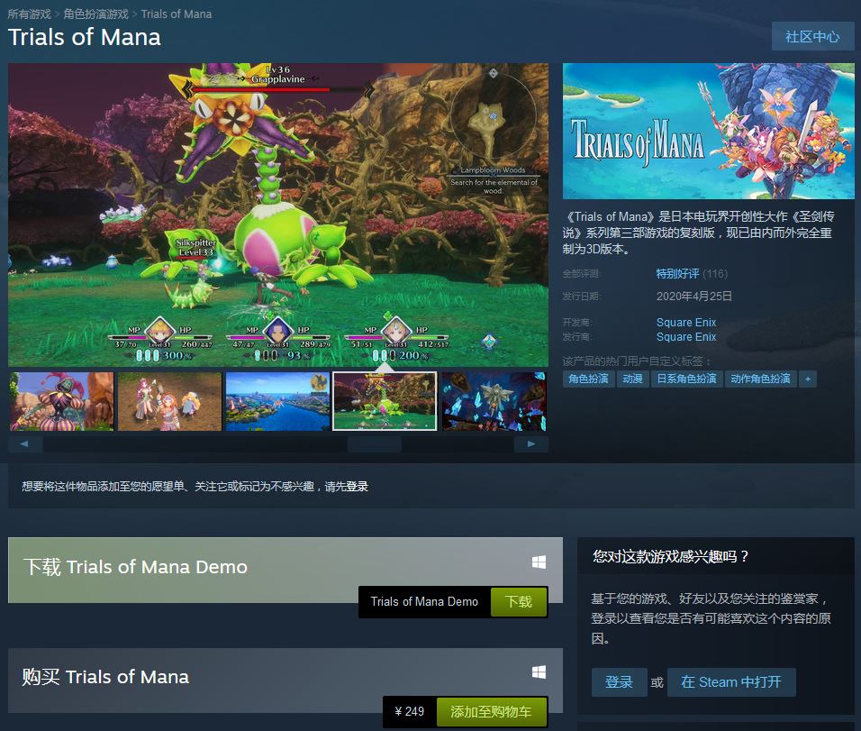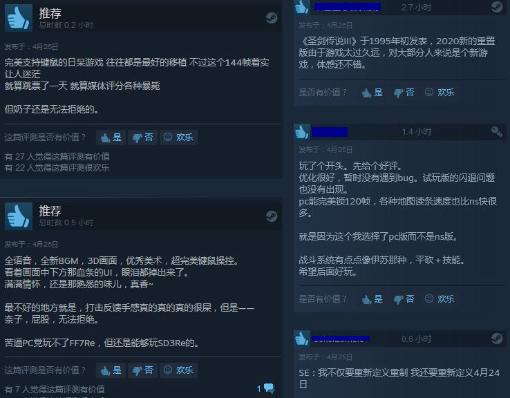 《圣剑传说3 重制版》登顶Steam热销榜 好评率89%