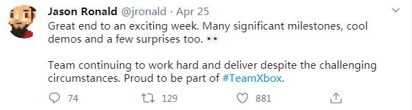 全球疫情日益严重,但微软似乎没有受到影响,他们仍在努力工作。近日Xbox Series X项目主管Jason Ronald发推文表示,Xbox Series X已达成多项里程碑,将为玩家们带来惊喜。 Jason Ronald表示:“这是让人激动的一周,我们达成了多项里程碑,还完成了多款试玩,将为玩家们带来一些惊喜。即使面临挑战,Xbox团队仍在努力工作。作为Xbox团队的一员,我很自豪。” 虽然不知道惊喜是什么,但此前Xbox负责人Phil Spencer表示微软将在5月举办发布会,官方将公布更多关于次世代主机和游戏新作的情报。 |