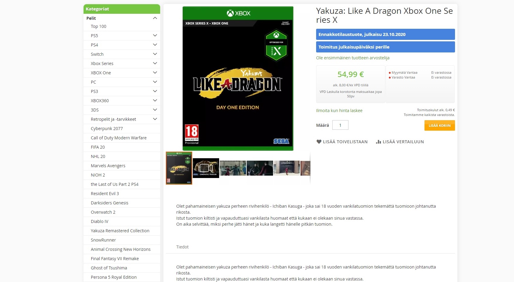 此前微软已经确认《如龙7》将是Xbox Series X首发游戏,近日一家芬兰零售商上架了《如龙7》,在线页面上显示发售日定在了10月23日。如果消息属实,那么微软的次世代主机Xbox Series X也将在这一天发售。
