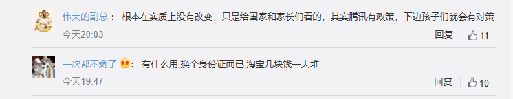 当你发现身边的熊孩子开始主动学习、做家务,也爱出去运动了,duck不必吃惊,没准是因为他们的游戏被限制了,就是这么真实。5月内,腾讯80款游戏将落实防沉迷新规,其中包括了人手一个的《王者荣耀》。 目前已经在进行灰度测试,未成年人每天限制1.5个小时的游戏时长,以及探索“人脸识别”技术应用,超过400元以上的充值,将需要进行人脸识别。 自2019年11月,国家资讯出版署发布《关于防止未成年人沉迷网络游戏的通知》下发,明确了游戏产业防沉迷六方面的举措,包括游戏实名制、控制未成年人市场、规范付费服务、行业监管、家长监护等。在去年底,腾讯、网易以及其他游戏公司已经对旗下游戏产品加入了防沉迷、实名机制。 在第27个国际家庭日到来之际,腾讯公司也对外公布了三项防沉迷工作新举措。其一,5月底,腾讯旗下共计80款游戏将落实防沉迷新规接入工作,其中不仅包括像《龙之谷》手游和《云裳羽衣》这样玩法奇特造型新颖的游戏,还包括像《和平精英》《王者荣耀》这两款牢牢占据手游前二的巨无霸。 其二,在充值方面,做了“人脸识别”的探索,腾讯规定未成年人在消费一定金额后便会遭到限制,已经在小规模测试应用。不过人脸识别关乎隐私,也有一些网友持反对态度,比如人脸识别支付就一度被网友拿来玩梗,并不是所有人都接受。 其三,腾讯成长守护平台用户已经突破300万,这个就主要是针对家长、老师对未成年人的监管。对于腾讯落实防沉迷新规,网友们的看法也是各执一词,有的网友认为上有政策下有对策,防沉迷新规根本阻止不了孩子们玩游戏的决心。 也有些网友有迷之关注点,比如“别嘲笑小学生了,我都是靠未年人上的分你能信?”、“未成年人比队友靠谱多了,除了喜欢要皮肤”、“这样菜就再也不能装小学生当挡箭牌了”、“吃鸡全靠小学生带呢,这让我咋搞”、“u1s1我还玩不过小学生”等等。 靠小学生带吃鸡、带上分这个可真的太真实了,毕竟现在这两款拳头手游产品,成年人不一定能玩得过几乎把游戏当做课余爱好的小学生,因此好像似乎也能明白了防沉迷系统对未成年人的意义所在了。 “这个年纪的我丝毫不慌”的网友们玩笑话归玩笑话,实际上还是希望未成年人玩游戏要有一定的控制能力,学业为重,腾讯为整个游戏生态圈作出了贡献,其实就算是成年人,也要严于律己,重视身心健康,拒绝沉迷游戏,你觉得呢? |