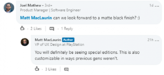索尼近日公布了PS5主机的外观,采用了与早先公布的无线手柄DualSense相同的设计风格:首度采用黑白双色配色,白色外壳搭配黑色核心的构造让人联想到海洋节肢动物或是生化机甲。与之同步公布的一系列周边也都采用一样的设计风格。 PS5数字版(左)、标准版(中)与DualSense(右) 在公布后,很多网友希望PS5外壳可以有更多的可选颜色,比如黑色。而根据索尼用户体验设计师Matt MacLaurin,似乎PS5的外壳是可以更换的。类似于Xbox 360机身的前面板,玩家可以购买不同的面板自定义他们的PS5。 在现已被删除的领英回复上,Matt MacLaurin告诉网友:“你绝对会看到特别版本,它也可以以之前世代从未有过的方式自定义。” 这种回答可以有很多猜测,比如:PS5的光条是否可以支持完整的RGB?是否可以使用新的定制面板将官方默认的外壳换掉? 不管哪一个,这都意味着PS5将会衍生出一个新的配件产业链。玩家可以购买有着独特设计的面板,并将其安装到自己的PS5上。而发行商也可以将他们的logo、角色和设计印在装饰性物品上,并将其出售。 目前索尼官方尚未确认PS5主机外壳是否可以更换,而且我们也不确定MacLaurin到底指的是什么。不过,至少PS5会有特别版本,让我们拭目以待吧。 网友PS作品: Xbox 360和可以替换的前面板: |