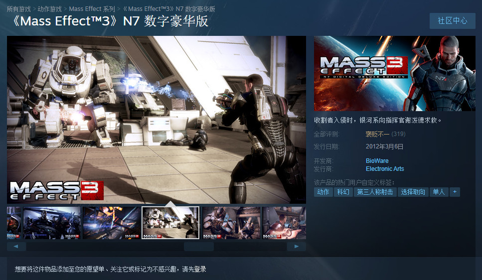《质量效应:仙女座》在上个月随着其他EA大作一起登陆了Steam发售,令人意外的是这款“系列风评最差”的作品在Steam上获得了“特别好评”评价,好评率达到了80%。对比来说,Metacritic上本作的用户评分只有5.0分,《质量效应3》在Steam上收获了“褒贬不一”的评价。 目前登陆Steam的版本是豪华版,原价188元,现正在半价促销,售价94元,不支持中文。截止到发稿时,此次促销还剩下39个小时。 游玩了17.7小时的用户Serpent Halberd评论说:“《质量效应:仙女座》确实没前三部那么深刻,尤其是第三部,五年前玩的现在还记得。但是《仙女座》没有那么不堪,肯定有跟风黑的,至少画质和角色扮演系统有了提升,序章剧情也还可以(可能有点老套),就当它是一个独立的科幻游戏来玩,以我这四个小时的体验来说还是很值的,可能缺点就是人物面部表情些许僵硬但也可以接受,其他方面等深入游玩再做评论。” 《质量效应:仙女座》最初于2017年发售,但因为糟糕的面部动画和剧情问题受到了大量玩家的批评。实际上在《圣歌》发售前,很多人都把这款游戏看做是BioWare评分最低的游戏。由于风评太差,后续的DLC也被EA取消。 目前BioWare正全力开发《龙腾世纪4》,部分人手专注于重做《圣歌》,新的《质量效应》恐怕还需要再等多年时间才能见面了。 Steam上的评价: |