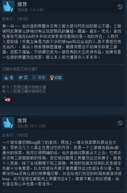 意料之外?《质量效应:仙女座》Steam获特别好评