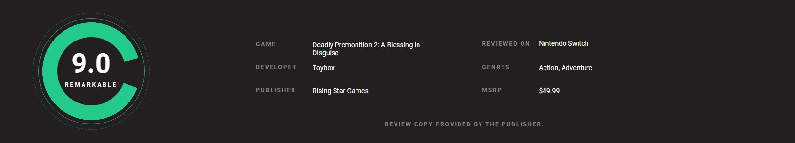 《致命预感2:隐藏的祝福》将于7月10日登陆Switch,IGN为其打出5分,M站均分56。IGN表示,游戏一般,谈不上好也说不上烂,但是在游戏性能表现上非常生硬。 IGN评分:5 一般 《致命预感2:隐藏的祝福》一般,谈不上好也说不上烂,但是在游戏性能表现上非常生硬。 IGN总评: 《致命预感2》像它的前作一样不差也不好。而这样平庸的表现就是它最糟糕的地方。玩家当然很感激有机会与古怪和热情的弗朗西斯-约克-摩根相处,因为他仍然是所有游戏中最有趣和独特的主角之一。但是《致命预感2》的游戏性能问题和生硬的战斗系统让人不太能容忍,而且它的核心解谜系统很荒谬,无法让玩家有那种难忘的感觉。 IGN评测视频: 其他媒体评分: M站均分 56 Gamespot 5分 DualShockers 9分 VGC 2/5星 NintendoLife 7分 |