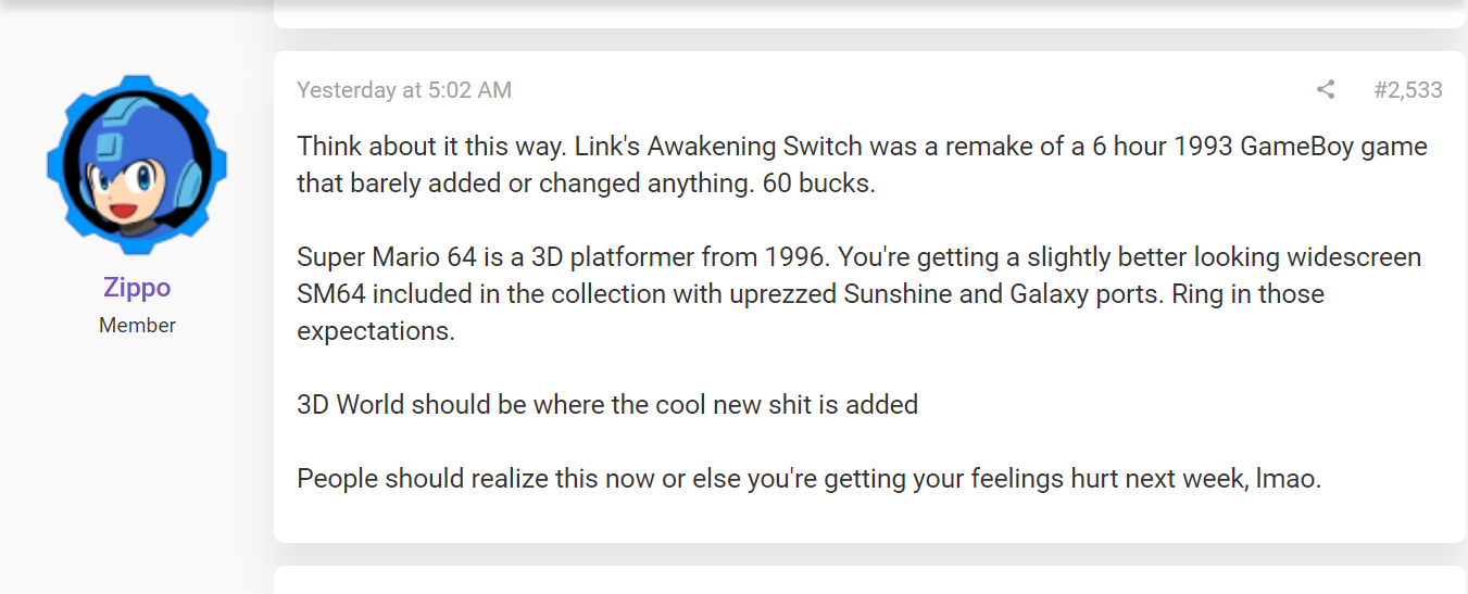 曾准确爆料几次任天堂直面会的知名舅舅党“Zippo”,近日爆料称任天堂将于7月20日举办直面会,并发布《超级马力欧纪念合集》和《超级马里欧3D世界 豪华版》。