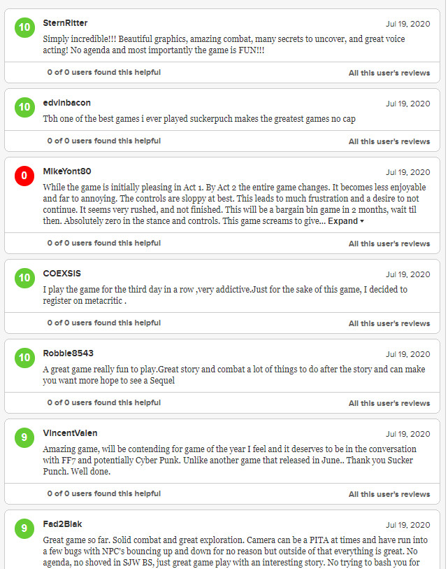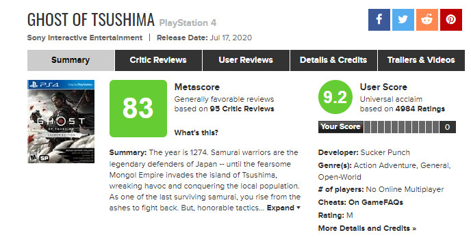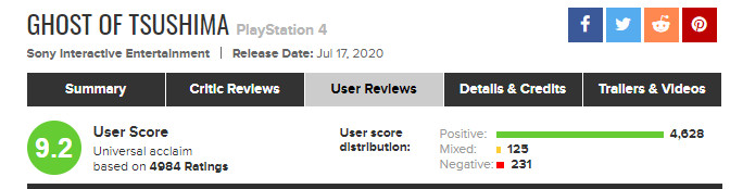 在经历了《最后的生还者2》用户评价轰炸风波后,评分网站MTC更改了用户评分规则:游戏发售36小时后玩家才可打分,而最近发售的PS4独占游戏《对马岛之鬼》显然是受益于这一新规的首批游戏之一。
