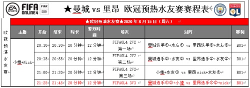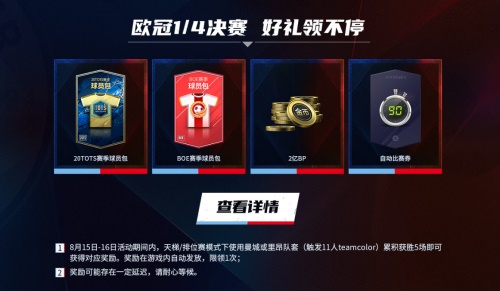 欧冠1/4决赛 FIFA ONLINE 4电竞预演 8.15准时开启! 北京时间8月16日凌晨3点,2019—2020赛季欧冠1/4决赛最后一场比赛将在曼城和里昂两支球队中展开。一个是英超顶级豪门,一个是法甲老牌劲旅,火星撞地球般精彩的比赛,我们拭目以待! 【比赛背景】 曼城和里昂在欧冠赛场上交手次数不多,最近一次是在2018年11月,欧冠小组赛第5轮,里昂主场2比2战平曼城;而在双方首回合较量中,曼城主场1比2不敌里昂,送给对手小组赛唯一一场胜利。 本场比赛开始之前,由于疫情影响,两支球队的欧冠1/8决赛第二回合都被延期,复赛后,曼城在主场通过针对性的高位逼抢战术战胜了皇家马德里,成功挺进八强;而里昂则凭借客场进球优势淘汰强敌尤文图斯,来到1/4决赛会师曼城。 纵观两支球队,都有极强的实力,特别是一回合的比赛一旦犯错没有太多调整的时间,所以双方开局应该都会求稳,在摸清对手的打法后才会进行相应地提速。曼城的控制,里昂的反击,在基调确定的基础上还有许多不稳定因素,也许是德布劳内神来之笔洞穿防线,也许是德佩化作最锋利的剑直插曼城防线,总之一回合的生死战,一切皆有可能,这场比赛一定会精彩纷呈,为广大球迷献上一道足球的饕餮盛宴。 FIFA ONLINE 4 官网页面也随之推出了相关预测活动,大家可以到官网参与,给你喜欢的球队送上支持! 【水友赛活动】 为了让广大玩家在赛前就将热情调动出来,两支电竞豪门“曼城电竞”和“里昂EDG”特举行了“曼城VS里昂”欧冠1/4决赛FIFA ONLINE 4电竞预演的水友赛活动,采用电竞职业选手+球迷社群的全新方式,让所有热爱足球的朋友线上线下全面参与。 比赛时间:2020年8月15日 20:00——22:00 直播地址: 斗鱼FIFAonline4 官方直播间https://www.douyu.com/7692166 解说嘉宾:曼城电竞小婕、里昂EDG Nick 比赛规则: 两队球迷社群各推选出3名选手代表,曼城、里昂EDG两队各派出3名职业选手,这样共6名职业选手+6名水友进行3场2V2比赛,有点球加时赛,踢满三局比赛。最后再由双方6名职业选手进行一局3v3的表演赛。 比赛赛程: 【全真数据模拟】 欧冠的比赛过程和结果从来都是超乎人们想象的,为了让大家提前感受两支球队正面交锋的氛围,我们在测试服进行了全现役阵容的全真数据模拟:选择了两支球队现役主力球员的最新赛季卡,在经理人模式下,最大化还原他们的精彩球技和战术配合,在观看时,你也能以主帅的角度发现对手的破绽,找出自身的问题并加以解决,是种全新的体验,感兴趣的小伙伴快点击页面观看吧! 曼城首发 里昂首发 【好礼领不停】 在8月15日——8月16日活动期间,天梯/排位赛模式下使用曼城或里昂队套(触发全11人teamcolor)累计获胜5场即可获得对应奖励,2亿BP、20TOTS赛季球员包、BOE赛季球员包等更多好礼等你来(奖励在游戏内自动发放,限领一次)。 更多精彩,更多福利,欢迎关注“曼城VS里昂”欧冠1/4决赛FIFA ONLINE 4电竞预演水友赛活动,FIFA ONLINE 4与您一起,为欧冠加油,为电竞喝彩! |