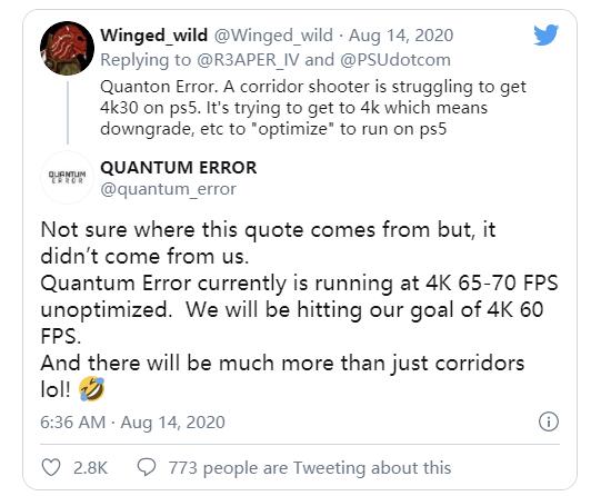 开发者保证《量子误差》在PS5上以4K 60FPS运行