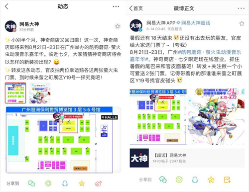 时别半月,大神神奇商店又要回归了!这一次,大神神奇商店将会携大量福利周边,出现在第24届酷狗蘑菇·萤火虫动漫音乐嘉年华的现场,现场依然有好玩的活动和丰富的奖品等你。目前大神漫展门票免费赠送活动正火热进行,参加活动即有机会领取门票,还没有门票的玩家赶快行动起来吧! 【神奇商店回归 摊位现场福利大放送】 8月21日-23日,大神神奇商店将来到广州酷狗蘑菇·萤火虫动漫音乐嘉年华。神奇商店将继续实行“只送不卖”的营业守则,现场为玩家派送大量周边福利——网易大神×CHERRY联名键盘、妖舞猫耳耳机、北通手机游戏手柄、大神联名T恤、欧吉趴趴零钱包等你想要的奖品这里都有,还有七夕特供福利限时派送! 想要拿到这些周边奖品,就来第24届酷狗蘑菇·萤火虫动漫音乐嘉年华的现场吧!锁定萤之町展区Y19号大神摊位,来现场完成互动小任务打卡,就能把丰厚奖励抱回家。 认准大神神奇商店摊位,现场还有更多惊喜等着你。 【漫展门票免费派送 大神邀你相约漫展】 为了能和玩家更好地完成这场线下美好相遇,大神特别推出漫展赠票活动。上网易大神APP或关注微博@网易大神APP、微信公众号“网易大神”,参与大神送票活动,即有机会领取广州萤火虫漫展门票。 动动手指关注转发,漫展门票直达你家。事不宜迟,快去和大神互动,参加活动赢取门票吧!大神神奇商店期待着和你的线下相遇。 【关于“大神”】 大神是网易游戏旗下的精英玩家社区。这里汇聚了广大精英玩家、游戏圈红人、行业大咖,集合了网易独家的官方资讯和福利趣闻,旨在为玩家打造一个丰富的游戏兴趣社交圈。玩家可以在大神与游戏中的好友实时聊天、多元互动;以游戏会友,结交更多游戏同好,和大神一起发现更多游戏乐趣。 |