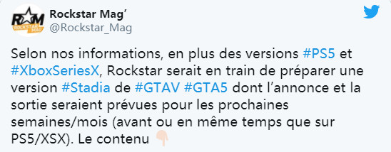 看起来R星的摇钱树《GTA5》可能会登陆谷歌云游戏平台Stadia发售。消息来自于法国媒体Rockstar Mag,称《GTA5》将和登陆PS5/XSX的时间一致,或差不多是同一时间。 考虑到《荒野大镖客2》登陆了Stadia,因此R星最知名的游戏《GTA5》登陆Stadia也在情理之中。 截止到目前,《GTA5》累计销量超过了1.35亿,成为美国十年来最畅销的电子游戏。《GTA5》于7年前发售,广受好评。从那时起,《GTA5》陆续登陆了多个平台。GTA的粉丝们一直在急切地等待《GTA6》,一些人开始担心缺少《GTA6》的消息。然而,Rockstar似乎仍然满足于为新玩家带来当前的游戏以及新的更新。 然而,考虑到多年来本作令人难以置信的表现,以及Rockstar过去对该平台的支持,我们很有可能最终看到《GTA5》登陆Stadia。 |