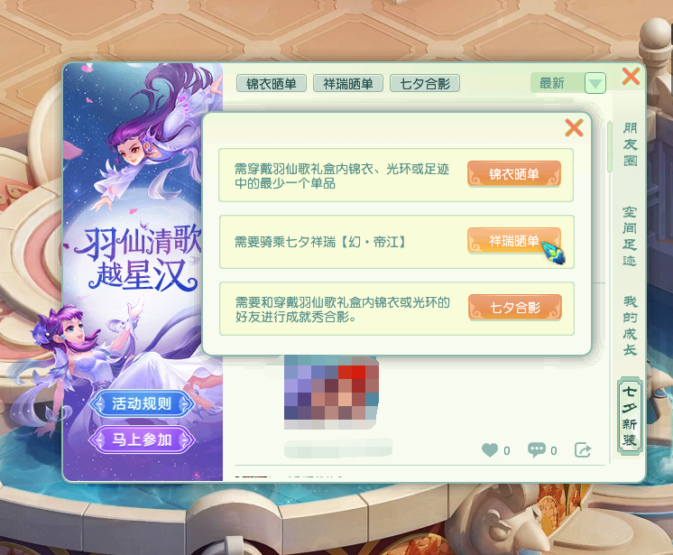 七夕与梦相伴,浪漫不负流年!虽然七夕佳节已过,但《梦幻西游》电脑版为玩家准备的精彩七夕活动,仍然在火热的进行中!在8月4日12:00至9月15日8:00期间,《梦幻西游》电脑版七夕主题活动将一直陪在大家身边,为大家送去满满的福利。目前,距离活动结束尚有一段时间,大家赶快在活动中秀出自己的自拍与合影,赢取超级丰厚的奖励吧! 晒单锦衣祥瑞,收获甜蜜大礼 在当前梦幻三界中,许多玩家都已经穿上了最新的“羽仙歌”锦衣。为了能够让更多人看到自己美美的新装,“七夕秀新装”活动为梦幻玩家们提供了一个展示自己的全新舞台,让大家在这里能够展现出自己最为靓丽的一面。在个人空间的活动页面中,大家只需展示自己的锦衣搭配并发布七夕秀新装的话题动态,就有机会免费获得七夕锦衣礼盒一份。 此次七夕主题活动除了有一大批玩家在个人空间秀锦衣外,还有许多玩家晒出了自己与“幻·帝江”祥瑞的靓照。在“七夕携良伴”活动中,大家可以在个人空间的活动页面骑乘七夕祥瑞参与活动,在活动期间大家只需进行七夕祥瑞的搭配展示并发布七夕携良伴话题动态,就可以抽取七夕情缘晶币的免单大奖。 分享幸福合影,赢取免单礼盒 如果大家身边的朋友比较多或者是情侣玩家的话,还可以和他们共同合拍。在“七夕晒合影”活动中,大家可以和身边的伙伴一起穿戴七夕内锦衣,制作好看的成就秀合影。在进入活动页面后,大家只需展示自己的合影并发布带有七夕晒合影话题的动态,即可抽取七夕锦衣礼盒和七夕情缘晶币的免单机会。除此之外,大家在活动中还可以为其他玩家点赞,每个活动的点赞数量只要达到77个,就可以获得抽奖资格。 秀出晒单合影,感受活动狂欢!如今,梦幻三界中,大家正在热火朝天的自拍合影,想要赢取各种豪华的免单大奖。与此同时,大家的点赞热情也十分高涨,纷纷在游戏中相互点赞,分享着自己的个性搭配。如果你也想加入到这场活动狂欢当中,那就赶快带着自己的锦衣与祥瑞,让更多人欣赏到你的华丽装扮吧! |