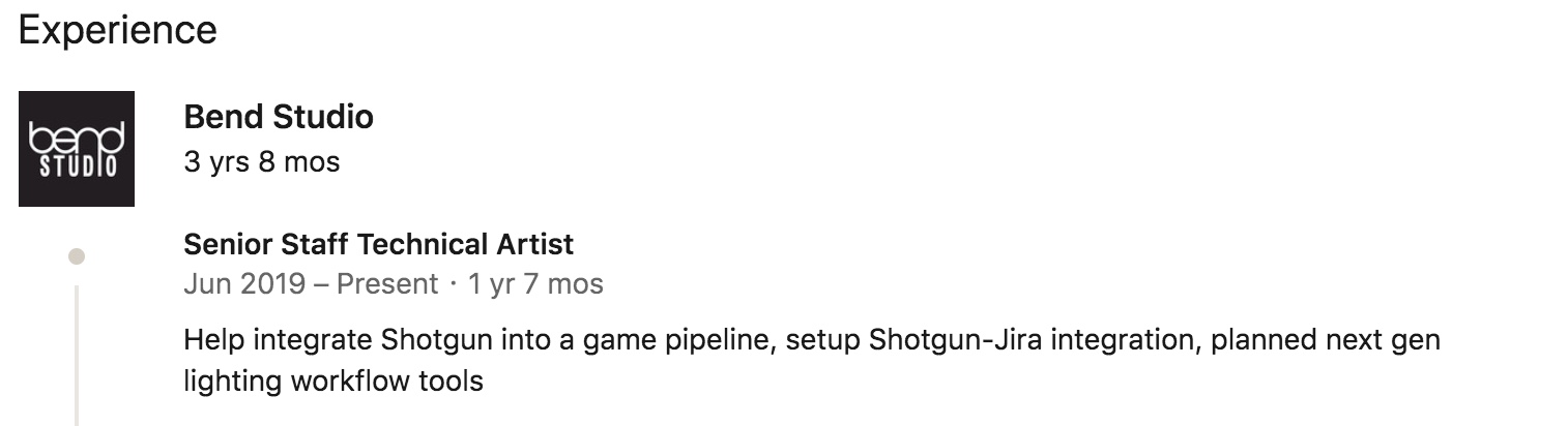 最近《往日不再》开发商索尼Bend工作室两名高级开发者离职,不过看起来并没有给工作室带来太大的影响。据悉Bend工作室正在他们尚未公布的新项目,也将是一个像《往日不再》那样的3A游戏。 根据之前的报道,索尼Bend工作室的这个新作目标是实现“电影品质”的面部动画,3D音频以及可能的在线多人。现在有了更多的细节流出。 根据外媒收集到的资料,在《往日不再》2019年4月发售不久之后,Bend工作室就立刻投入到新作的开发中。这是基于索尼Bend工作室员工在领英上的简历信息。 Bend工作室其中一名高级技术美工James Sathre的简历提到,从2019年6月到现在,他帮助团队将霰弹枪整合到一个游戏管线中,设置Shotgun-Jira集成,开发次世代光照工作流工具。 Shotgun-Jira集成2019年3月公布,根据官方博客,它能帮助把开发美术和工程工作流连起来,以带来更好的协作,沟通和更快的迭代。 如果我们看一下索尼Bend工作室其中一个程序师Silas Baker的资料,他提到在2019年9月开发一个新项目,那么这个想法就很清楚了:这不是与《往日不再》有关的游戏,而是一个在2019年开始的未公布新项目。 至于游戏的开放世界,Sony Bend工作室显然已经指派了一位资深的首席设计师Ron Allen专门为他们的新项目进行开放世界和任务设计。 而根据索尼Bend工作室目前的两个新招聘广告,他们的新作和《往日不再》一样继续采用虚幻引擎开发。 |