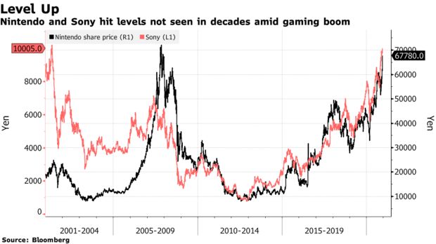 任天堂周四在东京股市创下一年多来最大涨幅,随着假期的临近,投资者开始关注游戏主机市场的需求。 这家总部位于京都的主机制造商股价上涨了6.6%,达到了2007年12月以来的最高水平。原因是其switch主机的需求和日本游戏股的广泛购买。而最近发布次时代主机PlayStation5的索尼也创下历史新高,这是自2001年PS2上市以来首次突破每股1万日元的大关。 东洋证券(Toyo Securities Co.)策略师Ryuta Otsuka表示:“在最近新冠肺炎的大流行以及圣诞节即将到来的情况下,投资者们将注意力转向了游戏制造商。”。 SMBCNikko分析师Eiji Maeda周一在一份报告中写道,11月份日本家用游戏机市场的硬件和软件销售额与2019年同期相比增长了5.5%。 由于新冠肺炎的大流行改变了消费者们的消费习惯,游戏开发商也从今年居家隔离的消费者身上获益匪浅,卡普空和光荣特库摩的股价也在周四创出新高。 |