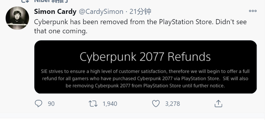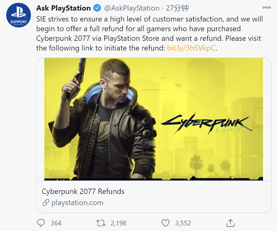 根据国外游戏零售商GameStop的内部备忘录,《赛博朋克2077》重大更新将在12月21日(也就是下周一)推出。本月14日时,CDPR承诺“下一个更新补丁”将在“7天内推出”,而21日恰好是CDPR承诺的最后期限。 作为2020年最受期待的游戏,《赛博朋克2077》在打破记录的同时也变成了一个灾难性的首发,无数购买了游戏的玩家因为bug,漏洞,以及PS4/X1版糟糕的品质想要退款。 外媒VICE曝光了疑似是GameStop员工给他们发送的内部备忘录,原文如下: “以下信息是由我们的CDPR合作伙伴发送。 CDP将在12月21日发布一个补丁,该补丁应该是解决消费者对《赛博朋克2077》担忧的主要解决办法。如果消费者仍然不满意,想要退款,他们应该被引导给这地址发邮件:helpmerefund@cdprojektred.com,由CDP直接引导退款。” 最新进展是索尼方面已经和CDPR达成一致,承诺将为通过PS商城购买《赛博朋克2077》而想要退款的玩家退全款。目前《赛博朋克2077》已经从PS商城下架。 |