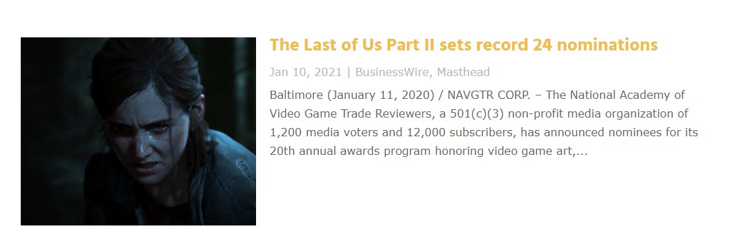 《美末2》创下美国游戏评论家协会大奖提名纪录