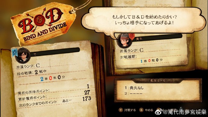 今日(2月23日),万代南梦宫公开了《勇气默示录2》特色系统情报第二弹,在《勇气默示录2》这款游戏中,除了寻找四个水晶的主线剧情,还有许多支线任务及本作独创的特色小游戏驳斗卡等许多可以钻研的新奇要素。 【驳斗卡(BIND AND DIVIDE)】 亚克希兰特大陆非常风行的卡片游戏,可用六张卡自由组成自己的卡组,卡片种类包含能占领地的「怪物卡」,以及拥有特殊效果的「职业卡」和「角色卡」。规则也十分简单,两位玩家要轮流出六张卡,最后占有比较多领地的人胜利。目前开放下载的体验版「Final Demo」中,只要通过主线剧情即可游玩! 《勇气默示录2》的背景设定为“分为五个国家的亚克希兰特大陆”,漂流到这片大陆的青年船员薛弗、由于水晶被夺走而陷入绝境的苗瑟国公主葛萝莉雅、为了解读一本魔导书而旅行的埃尔维斯,以及和埃尔维斯一起行动的佣兵亚黛拉。因缘际会之下相遇的四人,为了完成各自的使命与目的,一同踏上旅程,而四大水晶所发出的光辉,将会指引新一代光之战士。 《勇气默示录2》Switch中文版预计将于2021年2月26日上市。 |