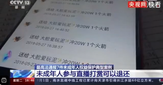 未成年刷礼物 打赏主播160w人民币 最高人民法院出新规整治