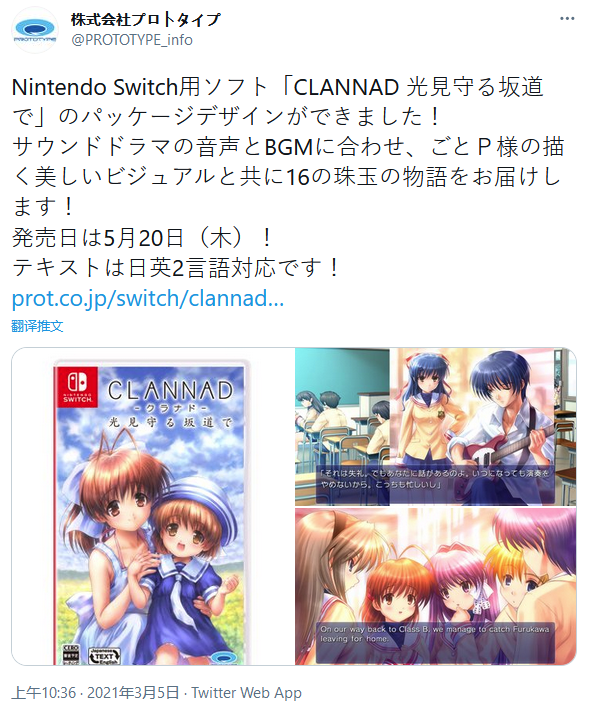 NS《Clannad光芒守护的小镇》实体版封面公开 5月20日上市