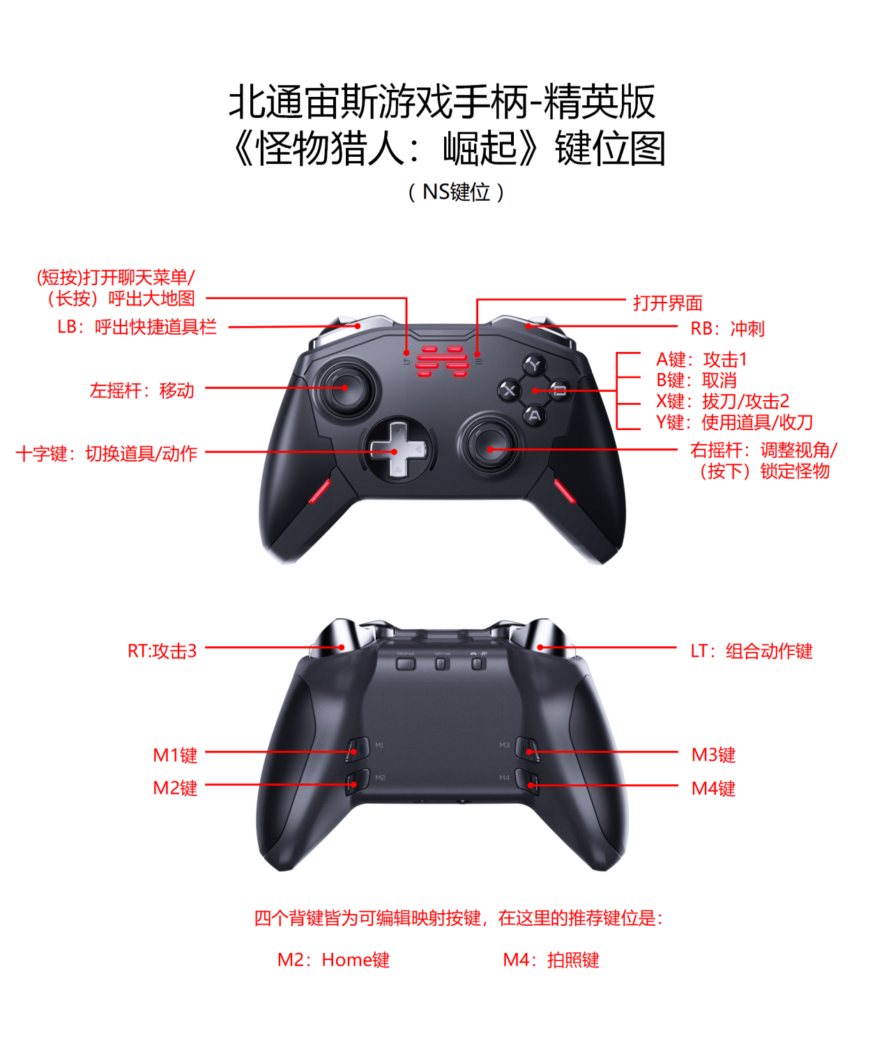 在3月8日的《怪物猎人:崛起》特别节目放送中,卡普空为我们展示了翔虫和替换技的详细信息,以及百龙夜行的玩法模式等,公布了经典怪物雷狼龙和迅龙的登场,更是宣布了第二个游戏试玩版《MONSTER HUNTER RISE DEMO Version2》将在3月12日发布。 游戏第二波demo试玩将在NS平台解禁,如无意外,如同1月8日第一波试玩一样,猎人们可以通过日服eshop或港服下载码获取游戏试玩版本。 据放送透露,在12日的最新试玩demo中,除教学与基础任务外,猎人们还将能接到第二次demo定制高难度任务“讨伐怨虎龙”。 这次讨伐怨虎龙任务整体讨伐难度调高,且有15分钟的限时。 作为一款以动作打击感闻名的游戏,自然也就少不了一个手感舒适,创造激情狩猎体验的手柄。作为迄今NS平台上唯一一款精英手柄,北通宙斯精英手柄就非常的有竞争力了。手柄整体设计符合国人人体工学尺寸,手感细腻舒适。 北通宙斯精英手柄在摇杆设计上配套了三组不同高度的组件,可以满足玩家的个人操控习惯,且从技术上杜绝了类似NS pro手柄出现的摇杆漂移问题,稳定帮助玩家完成高质量操作,实现快速移动和闪躲。 北通宙斯精英手柄作为一款机械手柄,XYAB键帽可随意互换,在PC/NS平台界面无缝适配。其搭载的0.7mm机械式动作按键采用电竞鼠标同款机械微动开关,按键手感清脆利落,触发速度比传统导电胶按键提升近35%,110g触发压力提供轻盈且出色的按键连发性能,助力猎人快速出招,每次输出多贪一刀,竞速天生快人一步! 《怪物猎人》系列对于新手猎人而言视角的转换一直都是劝退点之一,怪物快速移动导致镜头跟不上,或锁定怪物导致镜头快速切换令人头晕眼花。北通宙斯精英手柄还搭载了BMC体感映射技术,可将手柄自身搭载的体感功能映射至控制视角的右摇杆上,在《怪物猎人:崛起》的狩猎中可以实现切换视角如同摆弄相机般轻盈自由,快速灵活切换视角让怪物无所遁形。 (附《怪物猎人:崛起》北通宙斯精英手柄专属键位图) 工欲善其事,必先利其器。一把舒适好用的手柄绝对是猎人们闯荡怪物世界的核心,而北通宙斯精英手柄就是怪物猎人们最忠实可靠的伙伴。3月12日我们炎火村见! |