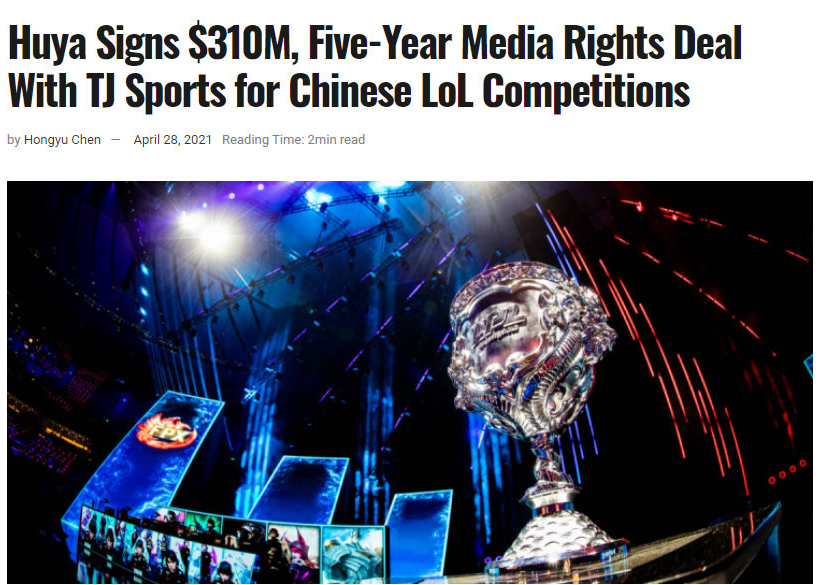 虎牙豪掷20亿买LPL独播权 体量大到不用走B站分销老路?