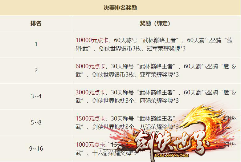 无差异,战武林!《剑世世界》经典盛事,武林大会携主题服群英争霸重开。完全无差异的赛事,凭技术,靠实力! 金钟罩、易筋经、一阳指、六脉神剑、打狗棒法、傲雪啸风、暴雨梨花、御武曲,天下武功百家争鸣!十六大门派掌门人,广发英雄帖,江湖各路高手济济一堂,争夺天下第一! 5月11日,新服群英争霸,一同激战武林,赢取万元奖励! 激战江湖 唯武独尊 五行循环,相生相克,武林竞技,是对大侠技术、操作、智慧、友情的集中考验。武林竞技赛事比赛类型为无差异五行三人赛,由三位职业五行属性不同的大侠组队报名参赛。比赛分为初赛及决赛两部分,初赛为循环赛,每个战队最多参加15场比赛。初赛积分排名前16的队伍将进入决赛。 参赛选手可以通过凤翔府【武林大会使者】处,传送进星辰花园报名各项赛事。在比赛开始前,由星辰花园的【武林竞技官员】传送进比赛会场做赛前准备。进入星辰花园会自动切换为无差异装备和对应固定的角色等级。 纵横沙场 豪杰本色 侠之大者,为国为民。武林大会,考验的不只是单打独斗,小队作战,还有纵横沙场的豪杰风范。 武林战场的形式为团队赛,为宋金战场模式。≥60级加入门派,且当前本服财富荣誉排名前500名。5月新服条件为≥60级加入门派,御空及以上,皆可组队参加报名。战场采取目前嘉峪关元帅保卫模式(襄阳战场)地图,在战场大营会有药商免费领取药品。 比赛结束后,会根据战场积分和战场名次领取单场奖励,同时还会获得英雄积分,每个服务器的个人排名前100的玩家英雄积分之和,会判断为该服务器的英雄积分,服务器会有积分排名。排名前10的服务器可以领取到丰富的奖励,个人英雄点达到30分的侠客即可领取。 武林沙场赛事,完全无差异,每个人都是沙场上的主角! 十万豪礼 等你瓜分 为了本次武林大会,江湖十六大门派不惜重金,为各位大侠准备了海量的奖励。从点卡到银币,从酷炫称号到游戏内珍惜道具奖励,应有尽有。 武林竞技排名第一的队伍,更是可以拿到万元点卡的奖励!好礼不停,拿到手软! 完全无差异的赛事,还在等什么,赶快凭技术,赢取万元奖金吧! 广发英雄帖 武林大会召开在即,紧要之事便是向天下群雄,广发英雄帖。 因大会人手不足,特邀各位大侠,一同广发英雄帖,邀请各位武林豪杰一同参加武林大会。英雄帖内特备英雄码、宝箱码。英雄码仅可在五月新服群英争霸内使用,宝箱码可在剑侠世界端游全区服使用。 宝箱码内含酷炫称号“极道天骄”、99万绑银、碎玉凌霜宝匣、螭纹奇石箱等好礼!仅需分享英雄帖给各位微信好友,三位好友点击进入英雄帖,即可领取宝箱码奖励! 江湖虽远,有您不孤单;刀剑无情,因爱而无畏。重温经典江湖,再造武林传奇,《剑侠世界》开启您的崭新人生。 |