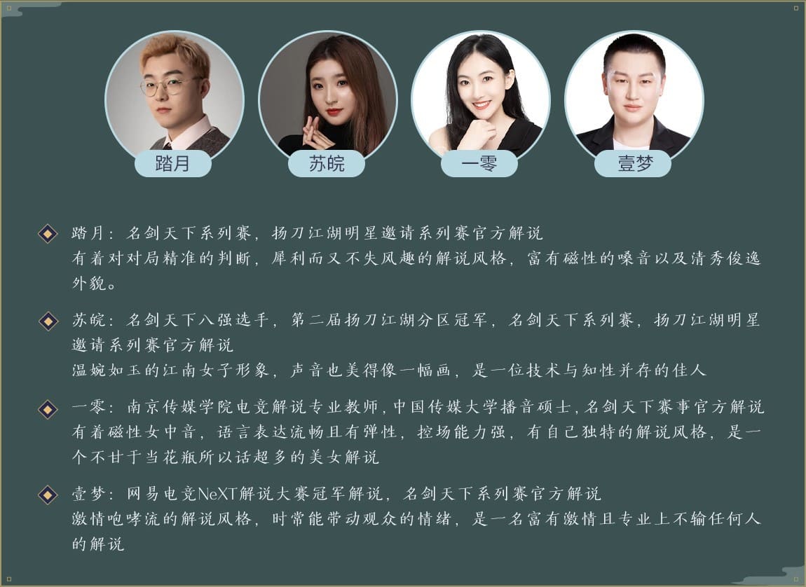 银鞍照白马,飒沓如流星!网易电竞NeXT一梦江湖·第九届名剑天下论剑联赛海选赛将于7月3日正式开战!自6月26日报名启动,一大批江湖侠士踊跃报名,意图在这场武林盛会一展奇技,扬名江湖。而今赛事帷幕徐徐拉开,海选赛即将来袭,各位少侠想必已整装待发,随时应战! 精彩赛程 四方豪侠齐聚武林 旨在为胸怀大志的每一位武林侠士提供表现自我的舞台,本次名剑天下论剑联赛分为海选赛,通服决赛,跨服匹配赛,跨服淘汰赛和总决赛五个阶段,其中,海选赛阶段将于7月3日14:00-16:00激情开打,经由16场匹配对战,依据胜场、获胜场次总时间对战队进行排名,互通服排名靠前的16支队伍将晋级至7月4日的通服决赛!在接连鏖战7月10日的跨服匹配赛与7月11日的跨服淘汰赛后,8支顶尖战队将在总决赛的舞台上展开巅峰对决!无论是初入江湖的新秀奇才,抑或是深悉武林的老练豪侠,各路高手集结对战,将为名剑赛场呈现怎样精彩的高能场面,让我们拭目以待! 武林之争风起云涌,未至最终胜负,冠军花落谁家也未可知。在第八届名剑天下论剑联赛中,【扬帆起航】战队一出现便焕发黑马之姿,通过出色的发挥和默契的配合,在决赛比拼中连下数城,力压群雄,最终勇夺冠军!本届名剑天下论剑联赛高手云集,谁又将突出重围,摘得桂冠? 豪华阵容 明星解说共襄盛典 赛场上江湖侠士酣畅战斗,赛场下金牌解说也在各展风采!在本届名剑天下论剑联赛,名剑天下系列赛明星解说【踏月】【壹梦】【苏皖】【一零】倾情加盟!犀利幽默的解说风格,丰富老练的游戏经验,将为本次比赛的顺利进行保驾护航,完美烘托现场的对决气氛! 匠心打造 顶级视觉体验加成 最顶尖的武林盛会,自然少不了最完美的声光视效配合!本次名剑天下论剑联赛在赛事举办与奖励设计上下足功夫,透过顶级工业水平与顶尖设计水准的强强组合,力图为观众奉上一场极致惊艳的视听盛宴! 在本届赛事中,虚拟演播厅的推出无疑将实现观赛体验的全面升级!赛事直播期间,观众可以通过虚拟演播厅实时观看比赛动向,了解武斗细节,感受沉浸式的观赛体验! 更有全新设计的冠军奖杯,灵感来源于电影《十面埋伏》中的绝美画面,以竹子作为底座,梦崽脚踩竹子,凌空而起,顺势应战的姿势,如无数英雄侠士仗剑江湖,划破长空,凌霄争锋的英勇状态! 丰厚奖励 全民狂欢共享豪礼 赛场上武林侠士酣畅对决,赛场下的各位观众自然也不能空手而归!本次名剑天下论剑联赛举办期间,名剑夺宝之旅也随之开启。在CC直播平台观看任一阶段的比赛,即可参与“名剑开宝箱”玩法,将有超高几率赢取雅韵时装、648元宝、四象图、神机万象匣、锦芳绣碎片、阵法碎片等丰富好礼! 名剑天下赛事期间,天机阁也将举行“名剑冲顶大会”,通过CC直播APP或者网页版CC直播,参与冲顶大会,连续答对十道题,瓜分千万银票、高额绑元。公平答题、一夜暴富。 名剑赛事期间,前往大神名剑专区发布共创江湖个人创作,描述少侠心中的服务器风云人物、帮会大佬以及他们的江湖故事,为自己喜欢的选手&服务器打call应援,将享有最高3000元宝、金色称谓、南华梦挂件、游戏礼包等豪华礼品!自由创作空间,趣味游戏内容,丰富玩法机制,让观赛的你也能收获沉浸式体验,感受江湖一梦! 武林争霸风起云涌,各大战队锋芒尽显!在变幻莫测的赛场,你的每一次神预测也将获得丰富奖励!6月23日至7月2日,各位少侠可前往大神名剑专区,参与话题#冠军队伍预测#,并以规定的动态格式发表自己的预测,将获得游戏礼包一份。活动主办方将从预测出最终冠军的侠士中,抽取两位分别送出一梦江湖盲盒一套;预测出最终四强的少侠,也将有4位将收获周边奖励! 赛事精彩无限,好礼派送不停! 结客少年场,意气何扬扬!网易电竞NeXT一梦江湖·第九届名剑天下论剑联赛战火高燃,江湖英豪蓄势待发,让我们一同见证这场武林盛会,成就江湖一梦! |