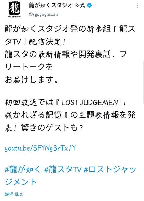 SEGA新节目“如龙工作室TV”7月6日开播 公布新作信息