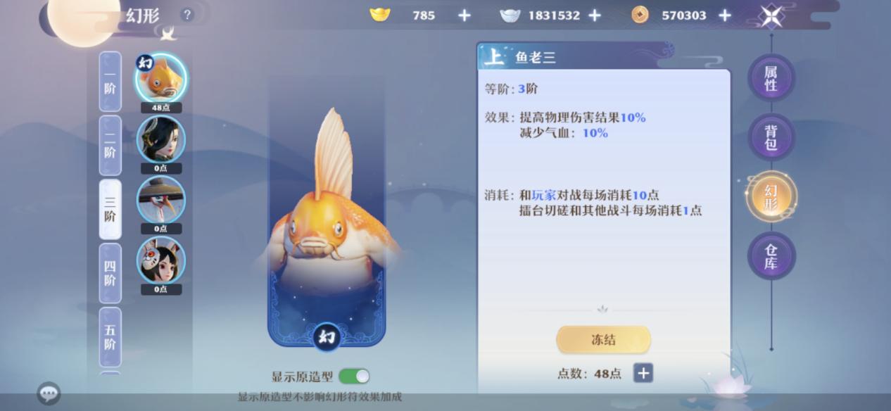 《梦幻新诛仙》7月22日版本大更新,夏日全新版本“元龙入梦”终于上线!除了让玩家大喊“萌爆了顶不住”的少男和尚、少女合欢全新体型,随之而来的还有新剧情、新外观、新技能、新道具、新玩法等等,其中最受玩家关注的,莫过于“幻形符”变身大作战! 那么,这个可以带来“超级变变变”的幻形符到底是什么道具?为什么组队玩家都变成了灵兽?幻形符怎么获得?怎样使用幻形符进行战斗?各职业如何合理搭配幻形符?这些问题笔者在第一时间体验后,已经总结出来使用幻形符的详细攻略,一起来看看吧! 首先,幻形符是什么?如何获得使用幻形符? 在这次的更新中,《梦幻新诛仙》新增加了一种辅助技能,也叫剧情技能,玩家通过完成主线剧情可以获得剧情点,就可以学习辅助技能了,分为四大类:幻形、药性、列阵、符术,幻形符就是其中一种。 幻形等级分为三级,学习第一级就可使用1-2阶幻形符,第二级可以使用1-4阶,第三级就可以使用1-6阶的了,现阶段最高的幻形符就是6阶的。以70级为例,完成所有主线剧情所获得的剧情点,足以把幻形技能点到三级了,所以大家放心,随着等级提升都可以完全体验到所有等阶的幻形符,不用担心没有办法使用高阶幻形符。 提高幻形等级,可解锁更多的幻形符 在幻形符的获得方式方面,不得不说官方太良心了。在集市就可以直接购买,最高阶6阶的幻形符也可以直接铜币购买,你敢信?别的游戏最高阶的幻形符,哪个不得氪金获得,这个玩过回合游戏的玩家应该深有体会! 另外,除了集市可以购买,挑战精英据点可掉落1-3阶幻形符,十大妖王可掉落4-5阶幻形符,挑战兽神更是可以直接掉落4-6阶幻形符,到时候掉落如果自己不需要使用,还可以卖了换铜币,这又是一个赚取铜币的渠道呀。 点击幻形即可变成灵兽,获得战斗属性加成 如果不需要幻形,再次点击冻结即可停止幻形 之前攻略给大家介绍过如何赚取铜币,所以利用日常赚取到的大量铜币,从集市直接购买还是很简单的,但由于玩家太热情了,今天幻形符刚开放购买,很多热门的都已经被抢购一空了。 不过根据笔者在群里与其他玩家讨论发现,幻形符不同区服之间的需求库存都是有所不同的,有玩家甚至研究出了“整点会刷新”这种规律?还没抢到幻形符的玩家,有需要的或许蹲点可以抢购一下,或者等库存有了再快速购买即可。 所有幻形符都可用铜币购买,记得等刷新库存时抢购 关于幻形符的使用,在幻形技能达到3级后,就可以使用全部等阶的幻形符,在人物幻形界面即可查看,幻形符使用后可以拥有50点幻形点数,每场玩家战斗扣除10点幻形点数,比如群英榜,玩家PK活动等,其余战斗每场扣除1点幻形点数。这一点也是比较良心的,不按照时间计算,基本在PVE活动中,一张幻形符可以用几天的了。 一张又萌又实用的幻形符可以用好久了 接下来,我们继续聊聊,幻形符有什么作用?如何合理搭配幻形符? 《梦幻新诛仙》幻形符的作用,是可以在外形上变换成为灵兽,变身之后额外增加属性或者技能效果加成,增加属性值随着幻形符等阶提高而变化。换句话说,就是既可以满足你变身灵兽的愿望,又可以得到额外的战斗效果,好看又能打,谁会不想变身呢? 每张“幻形符”带来的效果加成是不同的,所以要幻形成哪个灵兽?这也是一门学问!目前看来,物理职业,现在最受欢迎的就是6阶白鹿了,增加43点物攻和提高物理暴击率4%,真是超级暴力! 法系职业,建议可以选择六阶阴灵,提高36点法攻和4%法爆,也可以选择五阶的赤炎猴,提高36点法攻的同时,可以有9%的几率法术连击一次,伤害为正常伤害的50%,当之无愧的现阶段唯一一个增加技能效果的。 辅助职业,封印可以选择增加物防速度这种直接增加数值,增强站场能力的,也可以增加治疗度和封印命中率的,所以在未来的战斗中,节奏会加快不少,而且会有更大的操作空间。 《梦幻新诛仙》幻形符的出现,肉眼可见可以增强人物实力,在各人挑战如灵脉挑战和仙友挑战中,可以灵活根据对方的阵容情况,选择给自己加上幻形增加输出的符,或是增强自己的防御。比如在灵脉挑战中,会有回合数的要求,有时候我们明明可以打过对方,但因为超过了指定回合数导致挑战失败,这个时候就可以使用增加输出能力的幻形符,缩短我们的挑战时间了! 灵脉挑战回合数获胜规定条件,可以使用增加输出幻形符 在组队战斗中,各个职业都能得到加强,更容易完成之前比较难的一些挑战,比如三星仙师、兽神挑战之类的,尤其法系职业,之前一直被嫌弃,怪不得今天幻形符出现后,群里的法系职业小伙伴直呼法系职业的春天来了。 最后,幻形符变身大作战可太有趣了,全世界幻形玩疯了! 《梦幻新诛仙》幻形符作为辅助变身道具,除了增强人物实力,让我们更加顺利的玩转游戏,还要更重要的一点,那就是增加游戏的趣味性了!平时看惯了千篇一律的人物模样,今天一大早更新后,全频道、全世界、全帮派的各种幻化造型,简直玩疯了!看完笑死! 你可曾见过,御剑飞行冲浪的小黄鸭? 抑或是门前一排鸭,呱呱呱呱呱? 组个队,突然发现多出了一只奇怪的鸭鸭鸭? 好了,就此打住了!更多幻形符带来的快乐,还是留待大家自己更新游戏后,慢慢挖掘体验吧!另外,今天版本更新还增加了少男天音和少女合欢的造型,真是太惊艳了,赶快出转职系统吧,我要做小和尚—— 听说有很多老玩家已经顶不住诱惑,多开了少女