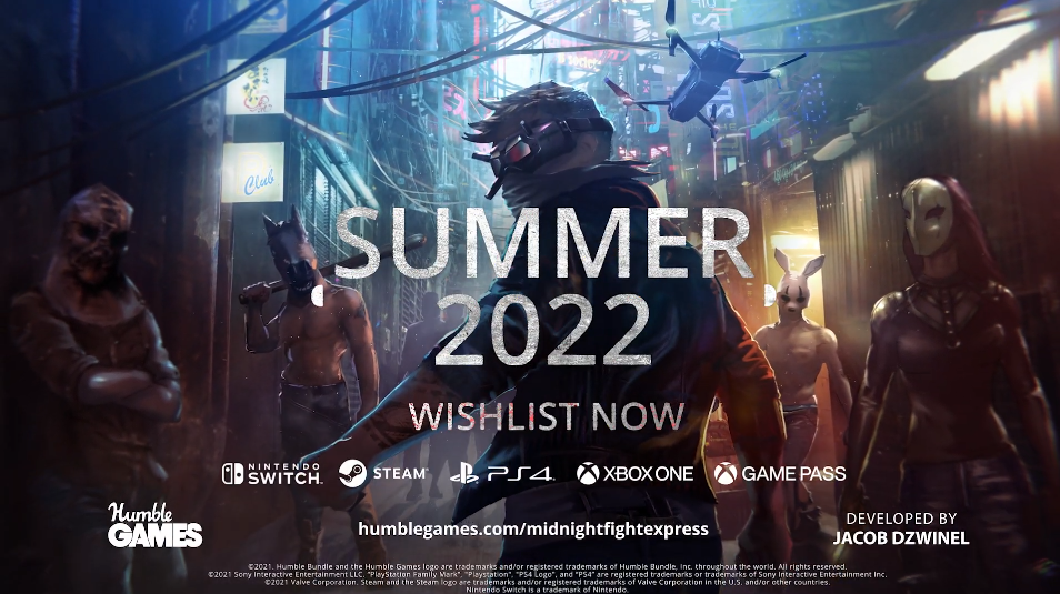 在今日凌晨的科隆游戏展“开幕之夜”活动上,Jacob Dzwinel公布了旗下俯视角动作游戏《午夜格斗快车》最新游戏宣传片,玩家将进入一个午夜城市之中,利用各种各样的武器击倒敌人。该作将于2022年夏季登陆 PS4、Xbox One、任天堂 Switch 主机以及 PC 平台,敬请期待。