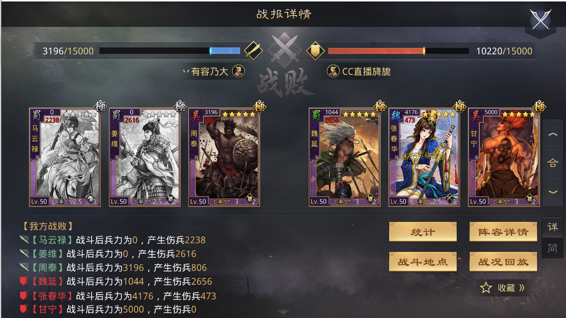 战火延续,烽烟再起!在《率土之滨》三国弈·临兵列阵64强首轮淘汰赛的直播中,无论是知名玩家的针锋相对,还是黑马选手的一鸣惊人,都让看直播的水友们印象深刻。在意犹未尽之际,第二周的比赛接踵而至, 同样本周CC直播也针对选手战报进行了精彩的赛事复盘。剩下的32位选手中谁能于万军之中杀出重围?又有哪些精彩瞬间值得关注呢?精彩立即揭晓! 战火再燃,群雄逐鹿竞争最后的16个晋级席位 第二周赛事同样激烈非常,剩余32位主公选手使出浑身解数,竞争最后16张晋级第二轮淘汰赛的门票。 在知名选手主公@CC主播旖旎和@丷有容乃大的对决中,前者凭借齐全的输出战法和辅助武将,以一流的阵容搭配完美掌控了对局节奏,在大营的甘宁没有损失一兵一卒的情况下赢得了漂亮的胜利。 CC直播平台主播七百哥(游戏名@打钱丨我嬴政),本周参加淘汰赛也是受到许多玩家的关注,期待七百哥在淘汰赛的发挥。从比赛现场收到的图片上能看到,@打钱丨我嬴政一开始获得战法并非强势,但好在主战法的输出拉满,不容小觑;经过一番厮杀后,七百哥还是直接秒掉对方大营武将顺利挺进32强。 淘汰赛收官,32强选手晋级下一轮 经过两个周末共计4天的激烈比赛,三国弈·临兵列阵首轮淘汰赛圆满收官,32强选手强势诞生。“莫听穿林打叶声,何妨吟啸且徐行。”恭喜晋级的各位主公,并预祝各位在新一轮淘汰赛中顺利发挥,再创佳绩! 征程继续!9月10日次轮淘汰赛全程线上直播 作为“三国弈·临兵列阵”系列赛事,第二轮淘汰赛将于9月10日-9月12日、9月17日-9月19日打响,采用bo3赛制进行1V1对决,决出16强选手,并瓜分商城积分和现金大奖。 本次赛事将通过CC直播进行全程线上直播,另外观众也可在网易大神、微信公众号、游戏精灵了解赛事信息。更有超多福利奖励等你来拿,走过路过千万别错过!大江东去,浪淘尽,千古风流人物。预祝各位选手旗开得胜,所向披靡,赛出风采,赛出自我。 |