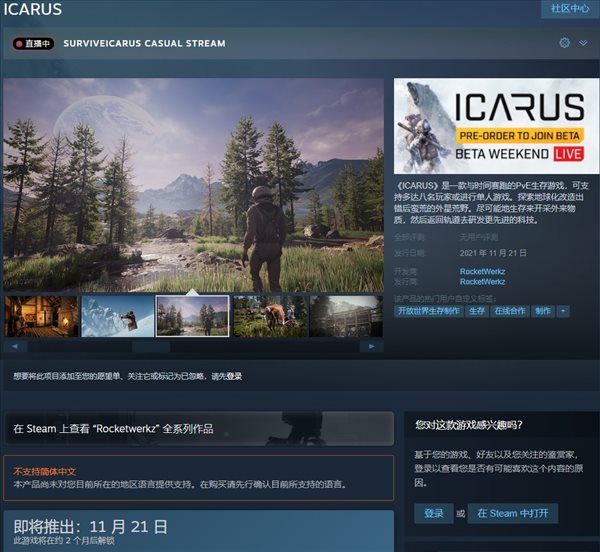 RocketWerkz制作发行的生存冒险游戏《伊卡洛斯》原计划于8月正式发售,但之后官方宣布游戏延期至11月上线。日前官方宣布《伊卡洛斯》将开启第二次Beta周末测试,RocketWerkz首席执行官Dean Hall表示,本次测试已基于第一次测试的玩家反馈,为游戏添加了很多新的道具、玩法与平衡性的调整。 Game Runner和RocketWerkz CEO Dean Hall表示: “基于我们第一个Beta测试周末的玩家反馈和预购情况,过去两周时间里我们为游戏加入了大量新道具、玩法系统和平衡性调整,我们认为玩家可能又需要一点时间来感受一下。 我们认为制作一款优秀生存游戏的关键在于快速迭代的能力。我们用很长时间开发架构来支持这一点,这次Beta测试周末就可以展示我们基于玩家反馈来快速迭代的能力。 在这次Beta测试周末里,加入基地毁灭级别的风暴是一项重要的新功能,另外我们还把游戏地图扩大了四倍,加入多种建筑、隐藏洞穴、更丰富的动物威胁、武器、负面状态和各种天赋。相比两周之前,这已经是一款截然不同的游戏。 《伊卡洛斯》设置在一颗地形改造失败的类地行星上,玩家需要扮演星际淘金客,在这颗行星上探索、制造、建设和生存。玩家开始时一无所有,降落到星球上执行时长从几小时到几周不等的任务,然后回到轨道上升级角色和科技,再执行下一个任务。 |