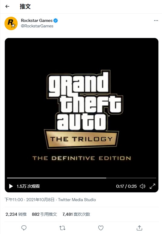 R星在官推上表示,在月末是《GTA3》发售20周年,或暗示将放出更多与《GTA》相关的消息。