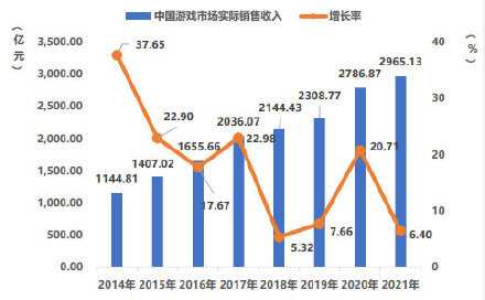 2021中国游戏销售额2965.13亿元,移动游戏占据主导