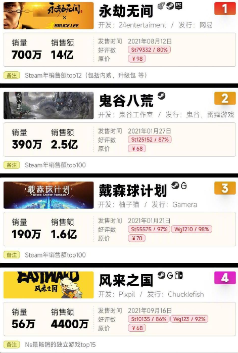 2017年《绝地求生》的大火让全球各地的厂商,都开始探索起了吃鸡玩法的无限可能。有的游戏开发者将吃鸡结合许多科幻元素,最终贡献出了《堡垒之夜》这样风靡全球的作品;有的开发者则将这一元素融入到经典IP中,推出了《使命召唤:战区》这样的写实风吃鸡。 国内的游戏环境历来推崇武侠元素,因此以冷兵器战斗为主体的武侠吃鸡游戏才孕育而生。去年上线的《永劫无间》,则凭借本身过硬的质量,后来居上成为了现阶段国内最火的PC端吃鸡游戏。 根据2021国产游戏年度销量榜的数据统计,今年8月份才发售的《永劫无间》在短短四个月的时间里卖出了700万份并创造了14亿的销售额。在玩家评价以及后期的用户留存方面,游戏的运营团队也足够给力。 《永劫无间》的更新还在继续,不断推出的新角色将持续给到玩家们新鲜感,但24工作室的野望却不仅于此,多平台上架成了他们下一步的规划。就在今天上午,《永劫无间》官方确定了将会推出手游的消息,且目前开发进展顺利。在官网以及Taptap上,也都已开启了预约窗口。 24工作室表示:“在保证提供更好端游内容的同时,《永劫无间》同名手游将竭力还原端游极具魅力的英雄、自由的地图交互及爽快的战斗体验。”截止到发稿前,《永劫无间》手游在Taptap上已经来到了预约榜第一名,有着9.2的高分。 不过跟《永劫无间》不是第一款武侠吃鸡游戏一样,它同样也不是第一款登录移动端平台的武侠吃鸡游戏。 此前《武侠乂》手游已经经历了三年的研发测试,并最终在2022年定档公测。巧的是《武侠乂》手游安卓版本公测日期为1月20日也就是今天,《永劫无间》手游选择在今天开启预约,恐怕多少还是有点较劲儿的意味在里面。 《武侠乂》早在端游热度过去之后,便已经开始了手游的研发工作。三年的测试让游戏内容越来越充实,可玩家的期待值却也因为时间的推移变得越来越低。希望《永劫无间》手游能吸取教训,在开启预约之后尽快进行公测。 而除此之外。端游移植到手游的适配性,也是需要重点考量的地方。如何将各种各样的功能付诸于手游中,会直接影响作品的品质。振刀、钩索、团队配合......这些端游的核心点移植到手游时都马虎不得。UI设计、键位布置、操作习惯等要素,开发团队都需要着重关照。 武侠吃鸡手游的内卷从今天起正式拉开大幕,届时不知道手游版的《永劫无间》能否又一次后来居上。 |