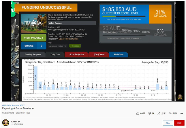2009年Kickstarter这个专为具有创意方案的企业筹资的众筹网站平台正式上线,使得许多游戏开发团队多了一条获得启动资金的路。因为Kickstarter的存在,许多原本不被看好、拉不到投资的游戏续作,在粉丝们的支持下重新支棱了起来。 过去的许多为玩家们所熟知的游戏,其实都是来源于众筹。它们中既有《神界:原罪 2》这样的佳作、也有《无敌9号》(《洛克人》精神续作)这样让粉丝们失望的作品。但不得不承认的一点是,Kickstarter确实给到了许多游戏开发者和玩家们圆梦的机会。 奈何眼光具有预见性的人终归是少数,为游戏众筹就像是一种投资,风险始终是存在的。像前面提到的那些,最终能够看到成品的游戏就已经算不错的了,近来Kickstarter网站上一款MMORPG游戏《TitanReach》的开发失败,就给许多玩家敲响了警钟。 这款游戏在2020年于Kickstarter网站上发起了众筹,第一阶段开发商 Square Root Studios希望能够筹集到43万美元(约合人民币272万)。可在后续推出早期试玩版本后,并没有吸引到足够多玩家的关注,当这笔钱筹集到20万美元(约合人民币126万)时,《TitanReach》的制作人Unravel就宣布因为款项不够,将正式停止对游戏的开发。 但玩家们的怒火还未彻底燃烧起来,Unravel话锋一转又拉上了YouTube 频道 KiraTV,借他们的口,向玩家透露自己得到了一个天使投资人的全额资助,游戏的开发将继续进行。 然而事情从那以后开始就不对头了,开发工作进行没多久,Unravel就又宣布项目开发的资金已经耗尽,并希望把 NFT融入到游戏项目中。不得不说搭上元宇宙这根线,Unravel画起饼来会更容易,但玩家们却不吃这套了,后续再没有为游戏众筹投入过金钱了。 自此《TitanReach》的开发正式停摆,之前筹集到的20万美元却落入了制作人Unravel的口袋。前面与他有联系的YouTube 频道 KiraTV,不久后曝光了自己所知道的一切。并声称:Unravel 挪用15万美元(约合人民币95万)资金投资加密货币失败后,购买了一辆特斯拉。 至于那个承诺全额资助《TitanReach》开发的天使投资人的身份,被曝光是南非加密货币企业家Andre Cronje。因而Unravel之前想要在游戏中加入NFT,也就不奇怪了。 事情发展到了这一步,玩家们被坑惨了。游戏制作人Unravel人间蒸发,广大玩家们的信任被辜负了。客观点来说,游戏众筹就是画饼的一种。如果无法辨别这张饼能不能实现,贸然投入很容易就会迎来失败。 |