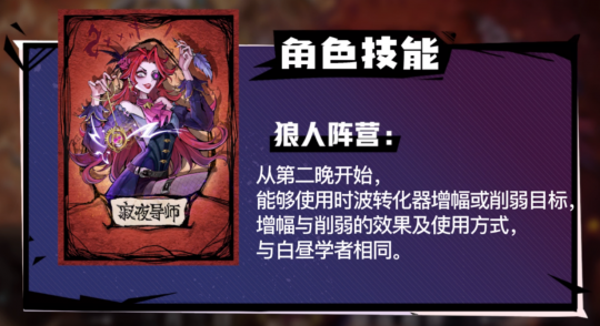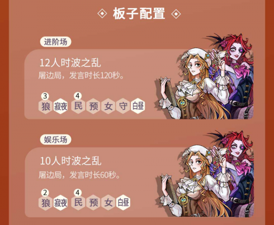 当白昼直面黑夜,会爆发出怎样惊人的火花?《狼人杀官方》全新板子“时波之乱”重磅来袭,3月3日版本更新后,双角色同步上线!是善良还是邪恶?是守序还是混乱?她们究竟是谁,又拥有着怎样的能力?一切谜底,正式揭晓! 【双御姐角色降临,霸气对决即将上演】 全新板子“时波之乱”正式上线,全新御姐角色白昼学者、寂夜导师来袭!优雅知性的开示会学者、杰出的女性文明之光,在发明出时波转换器之后,她的生活似乎发生了天翻地覆的变化......两个不同时间线的她被叠加在同一具身体中,白昼与黑夜,谁也无法消灭谁,他们既孤立,又统一。 【角色技能详解,增幅与削弱的巧妙利用】 《狼人杀官方》全新板子“时波之乱”即将上线,其中12人进阶场配置为3名普通狼人、寂夜导师;4名平民、预言家、女巫、守卫以及白昼学者。其中白昼学者属于好人阵营,神职。从第二晚开始,她能够增幅或削弱在场任一目标,每晚只能使用一次。 增幅对目标使用后,若目标为神职或狼人则该目标当晚可再行动一次。削弱对目标使用后,若目标为神职,则当晚无法发动技能,若目标为狼人,整个狼队当晚无法发动袭击。 寂夜导师属于狼人阵营,夜间无法参与狼人讨论和袭击,且无法获悉其他狼人的身份,但其他狼人会知晓寂夜导师的身份,其余狼人出局后,方可在夜间进行袭击,不能自爆。同时从第二晚开始,她同样能够使用时波转化器增幅或削弱目标,技能效果与白昼学者一致。 值得注意的是,当一名好人阵营的玩家夜晚同时成为白昼学者和寂夜导师的技能目标后,双方的技能会直接失效且该玩家出局;若受到两种技能效果的目标为狼人,双方技能也会失效且寂夜导师出局。 【大神主播集结,带你玩转新板子】 3月3日晚上7点,狼人杀特邀斗鱼、虎牙、bilibili、抖音四大直播平台的大神主播为大家带来新板子挑战赛!同样的技能设定,不一样的身份阵营,看主播们如何将新角色玩出更多花样!活动期间前往官方直播间实时收看精彩节目,还将有机会参与抽奖,赢狼人杀周边等惊喜福利! 3月3日,狼人杀全新版本来袭,新板子“时波之乱”震撼上线!双御姐角色降临,等你体验,还有更多精彩活动等你来解锁! 关于《狼人杀官方》—— 《狼人杀官方》一直以来致力于游戏玩法的打造,力求给玩家带来最满意最优质的玩法体验以及游戏环境,积极开拓全新玩法,女巫、守卫、摄梦人、魔术师、猎魔人等板子应有尽有。更有全新模式“跑跑狼人杀”重磅来袭,三分钟爆笑推理,随时随地来一局,欢声笑语乐不停!实景操作古风Q萌小人嗨翻浪漫碎叶城,狼人钻地道、搞破坏,好人喂黑猪、炼仙丹,更多逗趣任务等你来解锁!快来狼人杀官方,和全网年轻人热闹组局! |